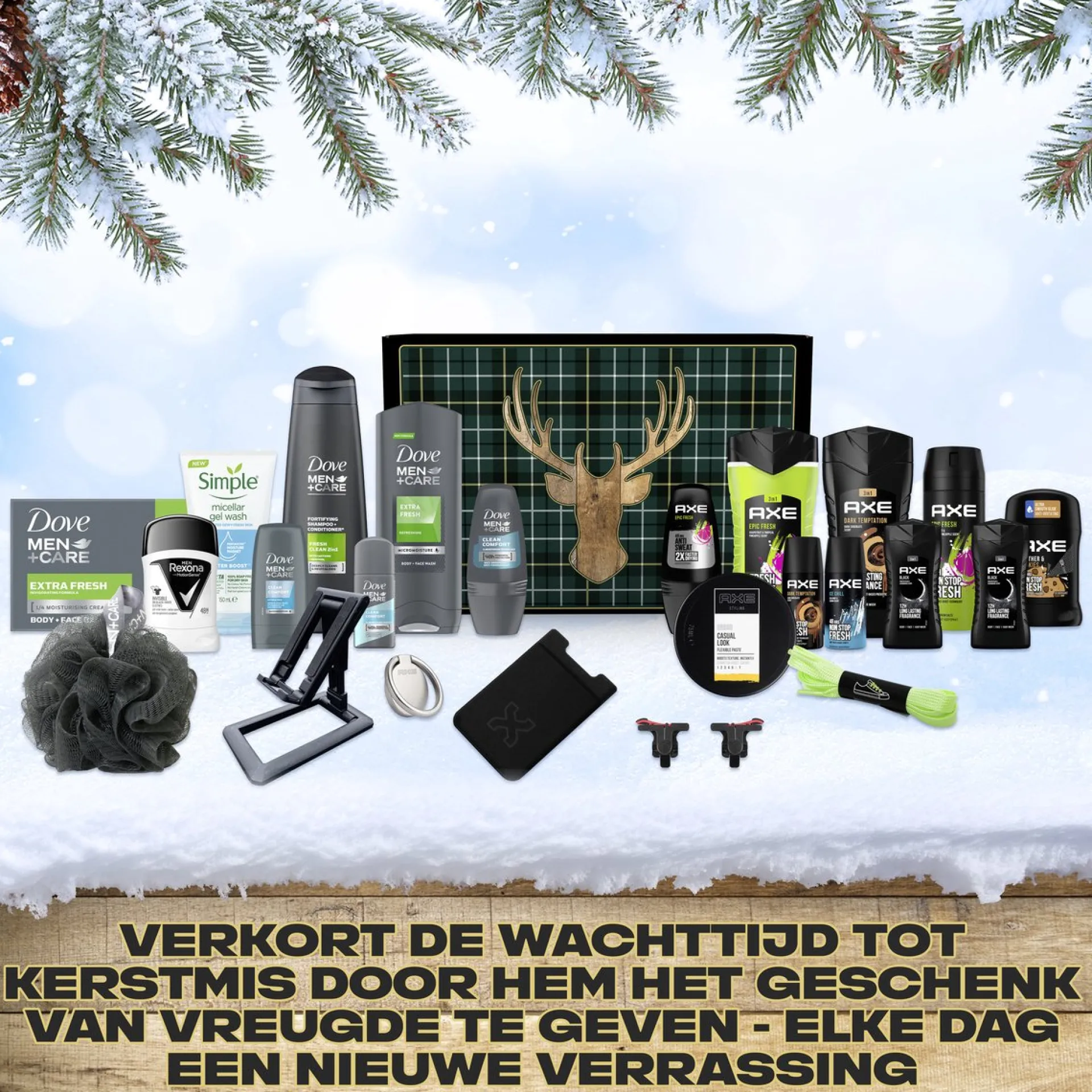 Met Kerstmis Voor De Deur, Wat Is Er Beter Om Je Dierbaren In De Feeststemming Te Krijgen Dan Een Adventskalender Om De Dagen Mee Af Te Tellen? Deze Doe-Het-Zelf Adventskalender Voor Hem Van Axe, Dove Men+Care, Rexona En Simple Diy Adventskalender Geschenkset Bevat 18 Verzorgingsproducten En 6 Spannende Verrassingsaccessoires Die Samen 24 Dagen Aan Ontdekkingen Opleveren.