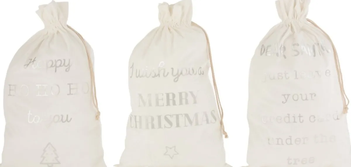 J-Line Kerstsokken> Zak Kerst Engels Velvet Wit Large Assortiment Van 3