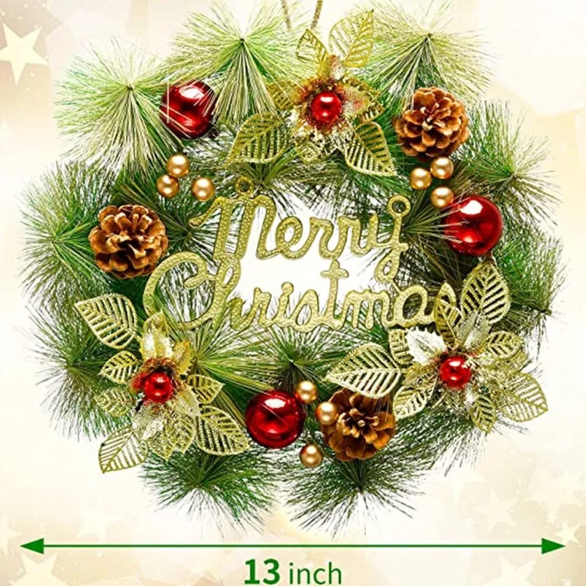 - An Exciting Variety: This Christmas Wreath Comes With Great Trinkets. Both You And Your Family Will Have Great With The Great Merry Christmas Letters, Gold Leaves, Red Balls, Flowers And Pine Cones.