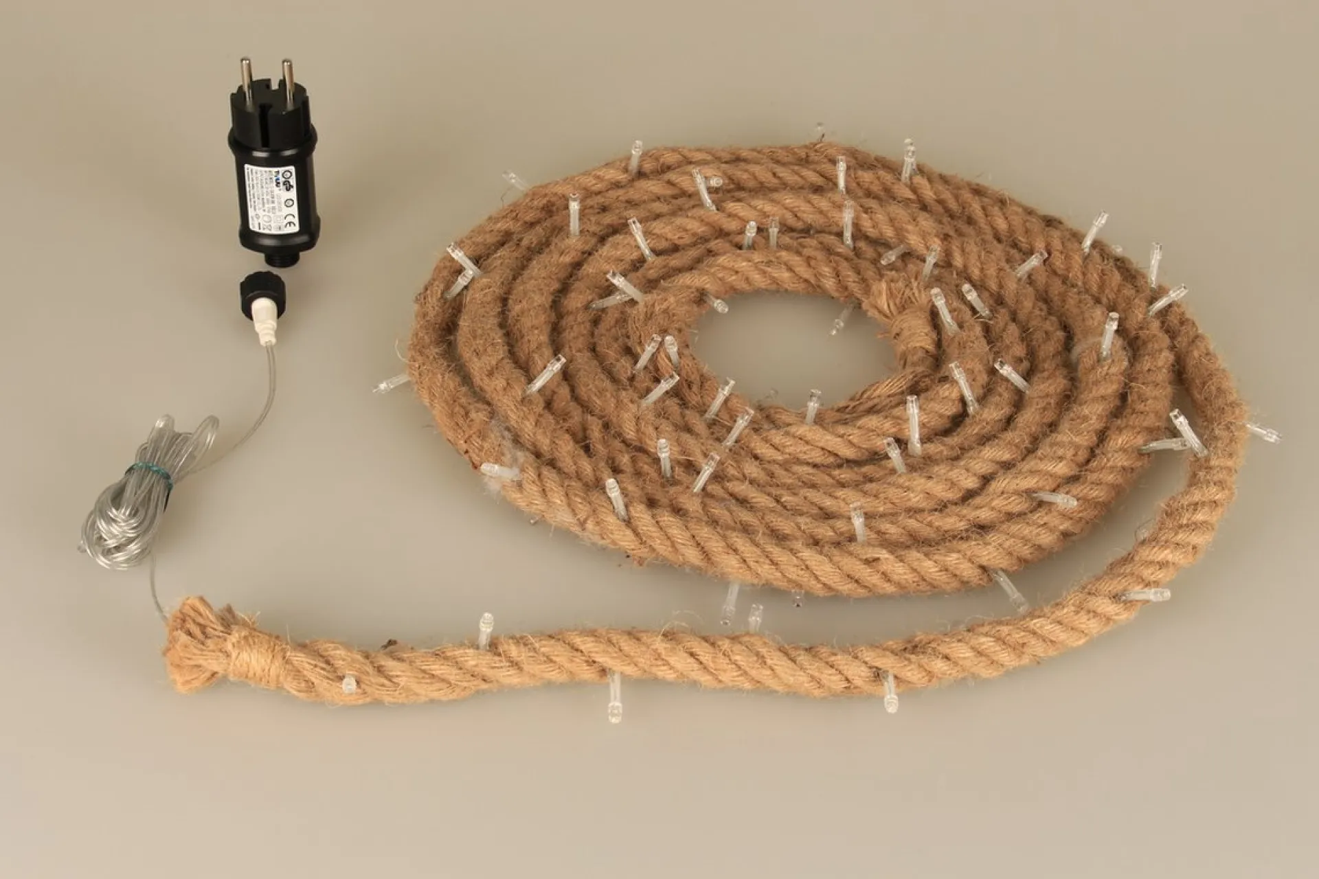 De Totale Kabellengte Is 6 Meter, Waarvan Het 3 Meter Lange Henneptouw Gedeelte Is Voorzien Van 60 Led’s, Die Zorgen Voor Een Sprankelend Lichteffect.