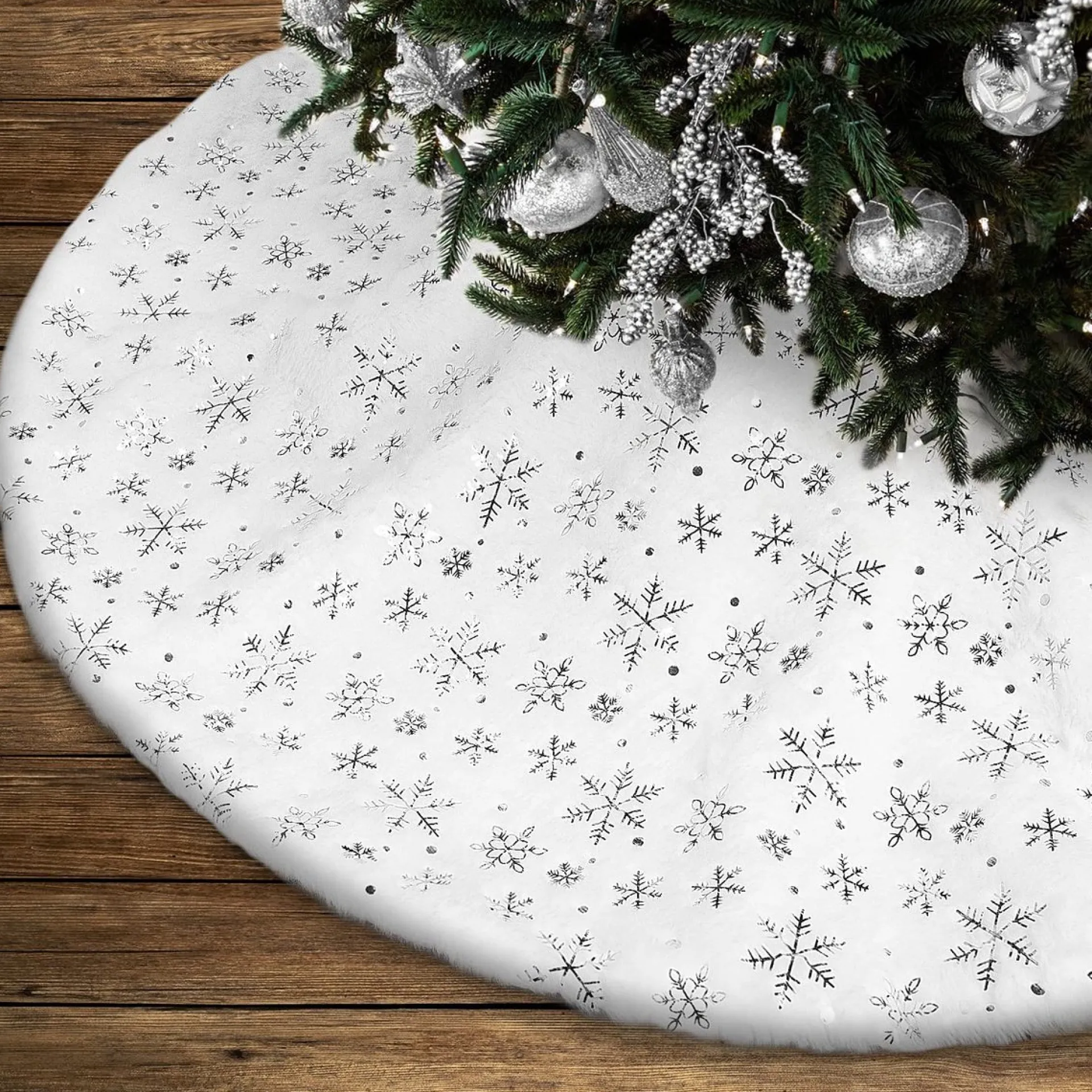 - Klassiek En Elegant: De Lanpn Sneeuwvlokken Kerstboomjurk Is Perfect Voor Besneeuwde Kerstfeest-Themadecoraties, Met Een Glanzend Sneeuwvlokpatroon Dat Zich Over Je Hele Tapijt Verspreidt Om Je Kerstboom Te Accentueren.