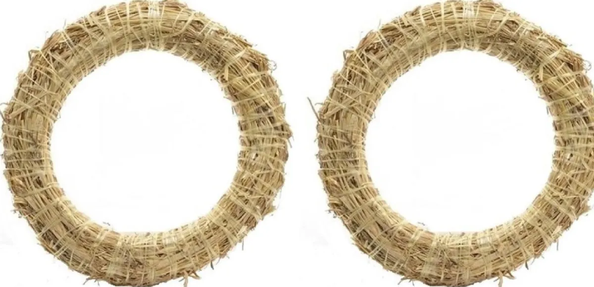 Set Van 6X Stuks Stro Kerstkransen Om Te Decoreren 35 Cm. Krans Van Stro Om Bijvoorbeeld Een Kerstkrans Van Te Maken. Diameter: 35 Cm. Dikte: 6 Cm. Kerstversieringen/Paasversieringen.