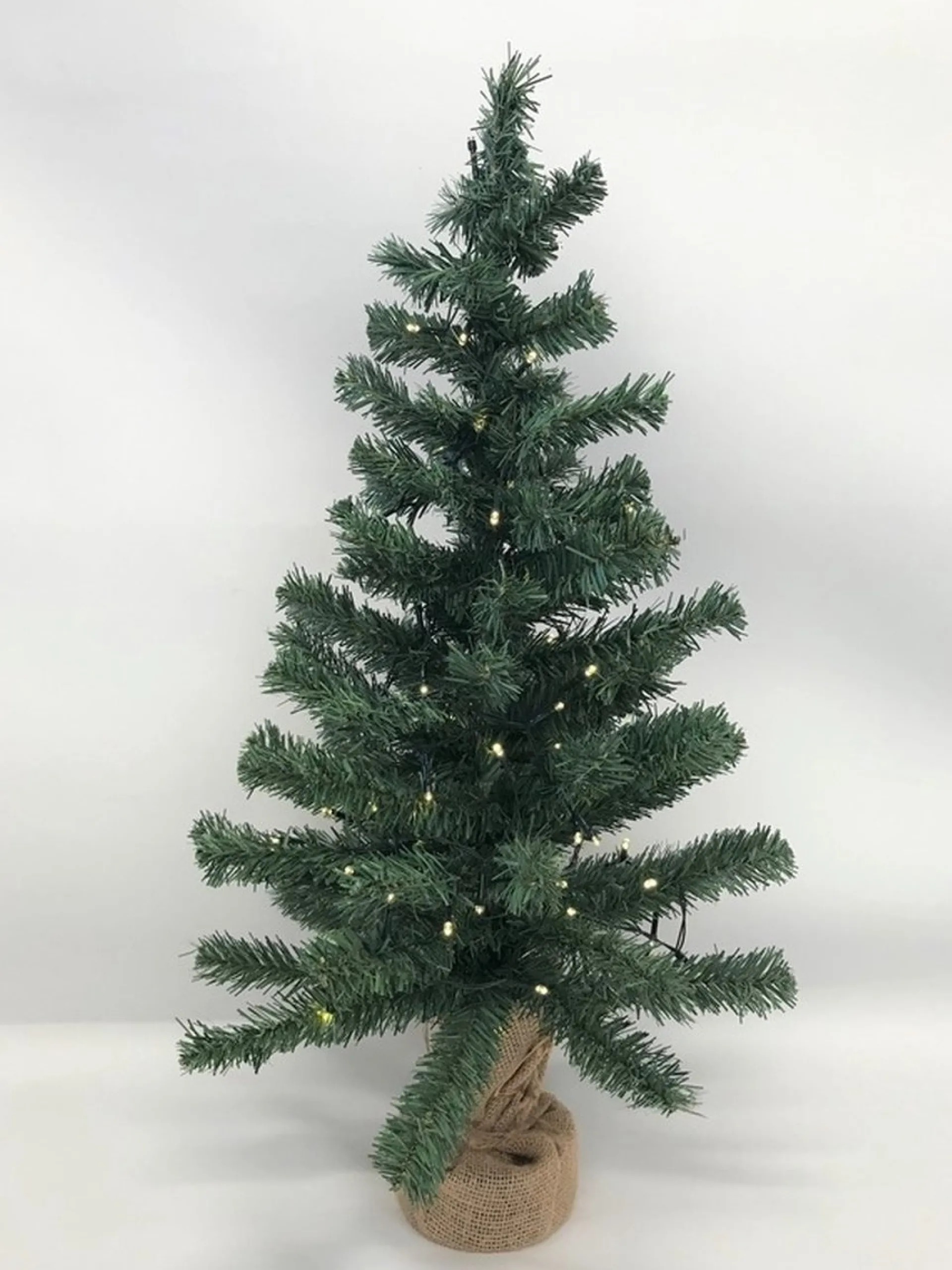 Kleine Kerstboom In Jute Zak Inclusief Verlichting 75 Cm. Deze Volle Mini Kerstboom Heeft 81 Takken En Is Gemaakt Van 100% Pvc. Het Boompje Wordt Inclusief Kerstverlichting Geleverd: Een Snoer Met 96 Warm Witte Led Lampjes. Deze Werkt Op Batterijen (Niet Inbegrepen).