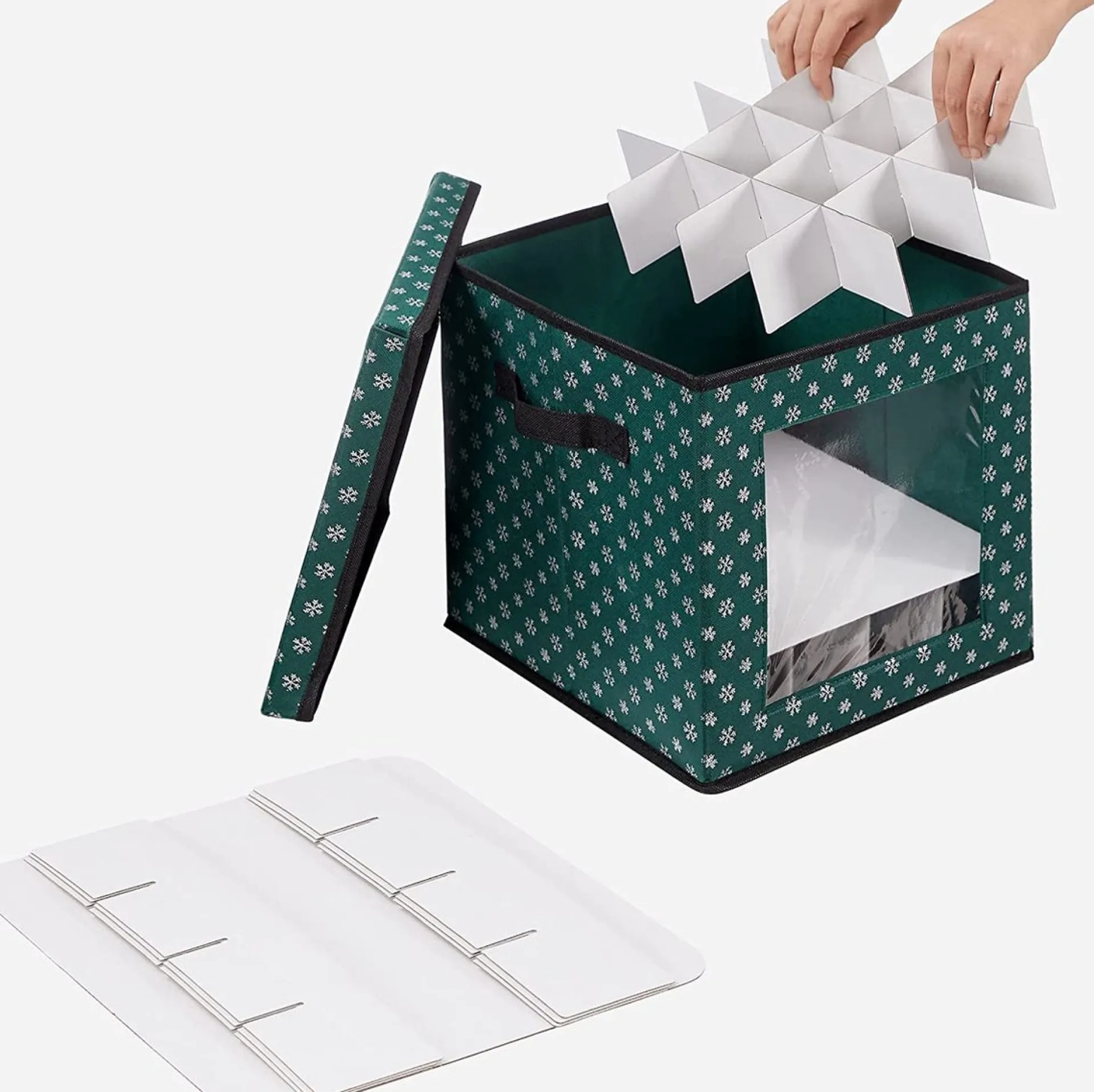 - Veel Opbergruimte: Laat Uw Kerstboom Schitteren In Feestelijke Kledij! Alle Decoratieve Stukken – Zowel Rond Als Rechthoekig – Kunnen In Deze Groene Dozen Worden Opgeborgen, Die Door Scheidingswanden In 4 Niveaus Zijn Verdeeld (Max. 64 Ballen Per Doos).