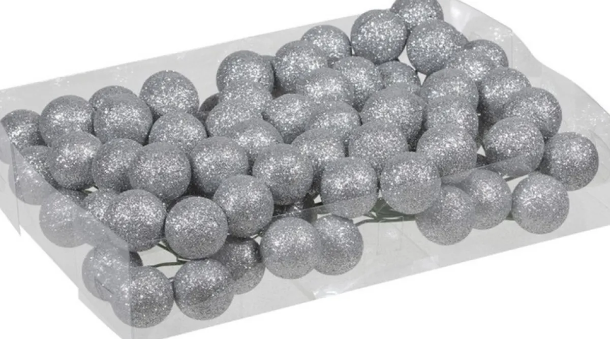 80X Zilveren Glitter Mini Kerstballen Stekers Kunststof 3 Cm. Een Voordeelverpakking/Set Van 80 Stuks Mini Kerstballetjes Op Stekers Om Bijvoorbeeld In Een Kerststukje Te Doen.