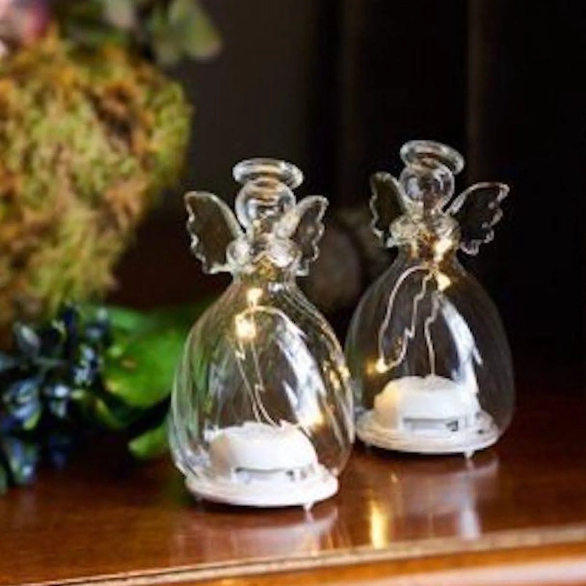 Set Van 2 Mondgeblazen Engeltjes Met Ieder 3 Led Lampjes. De Lampjes Werken Op Batterijen En Hebben Een Timer Die Handmatig Aan En Uitgezet Kan Worden Of Via De Sirius Remote Control Kan Worden Geactiveerd. In Deze Serie Hebben Wij Ook Nog Een Grotere Engel, Een Trio Van Ballen Op Staaf En Kerstbomen In De Collectie