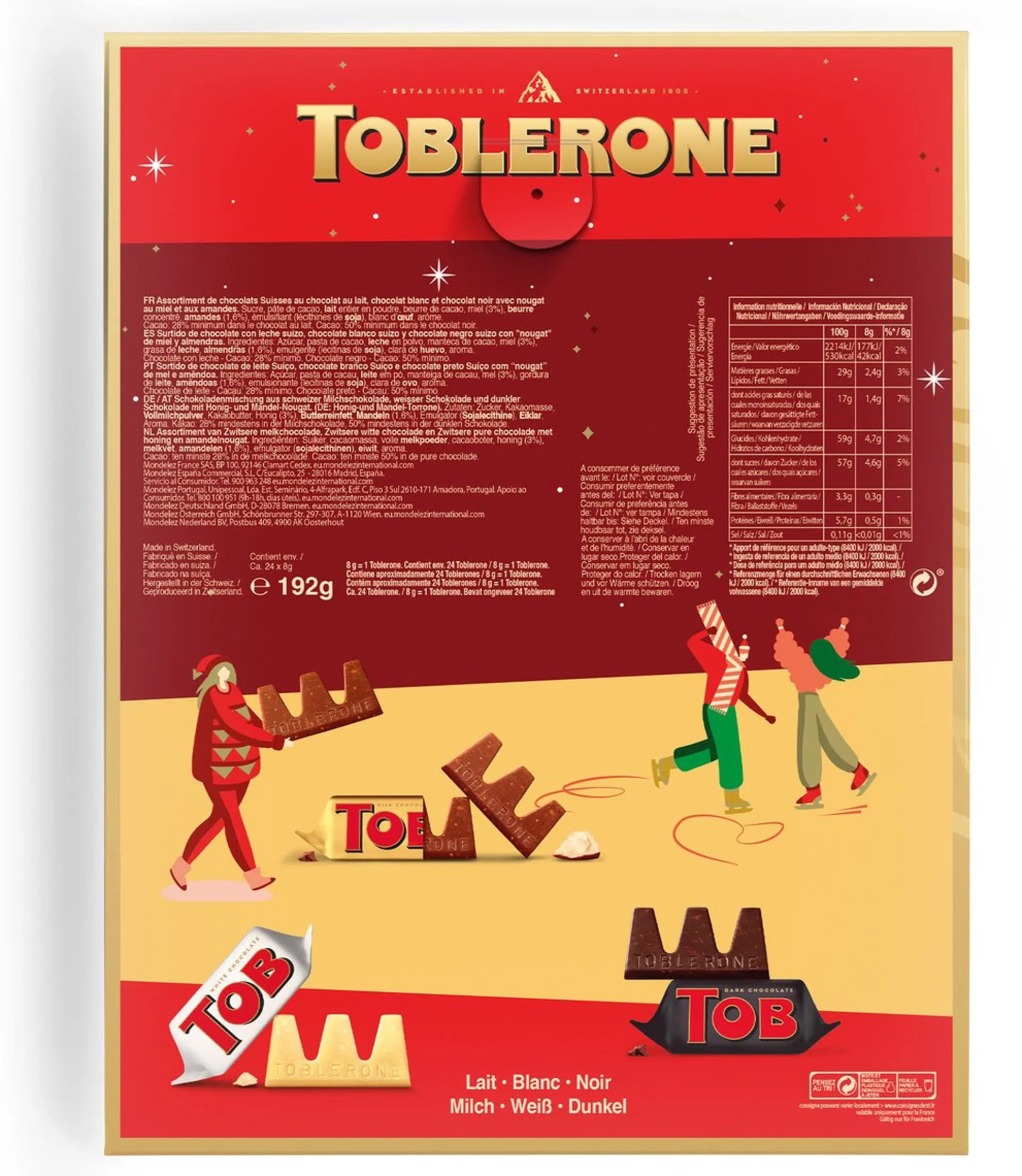 Jouw Persoonlijke Adventskalender Is Gevuld Met 24 Overheerlijke Toblerone Chocolaatjes In Verschillende Smaken. Vanaf 1 December Mag Je Er Hier Iedere Dag Eentje Van Opsmikkelen. De Adventskalender Is Voorzien Van Een Wenskaart Met Een Leuk Kerst Design En Dito Boodschap.