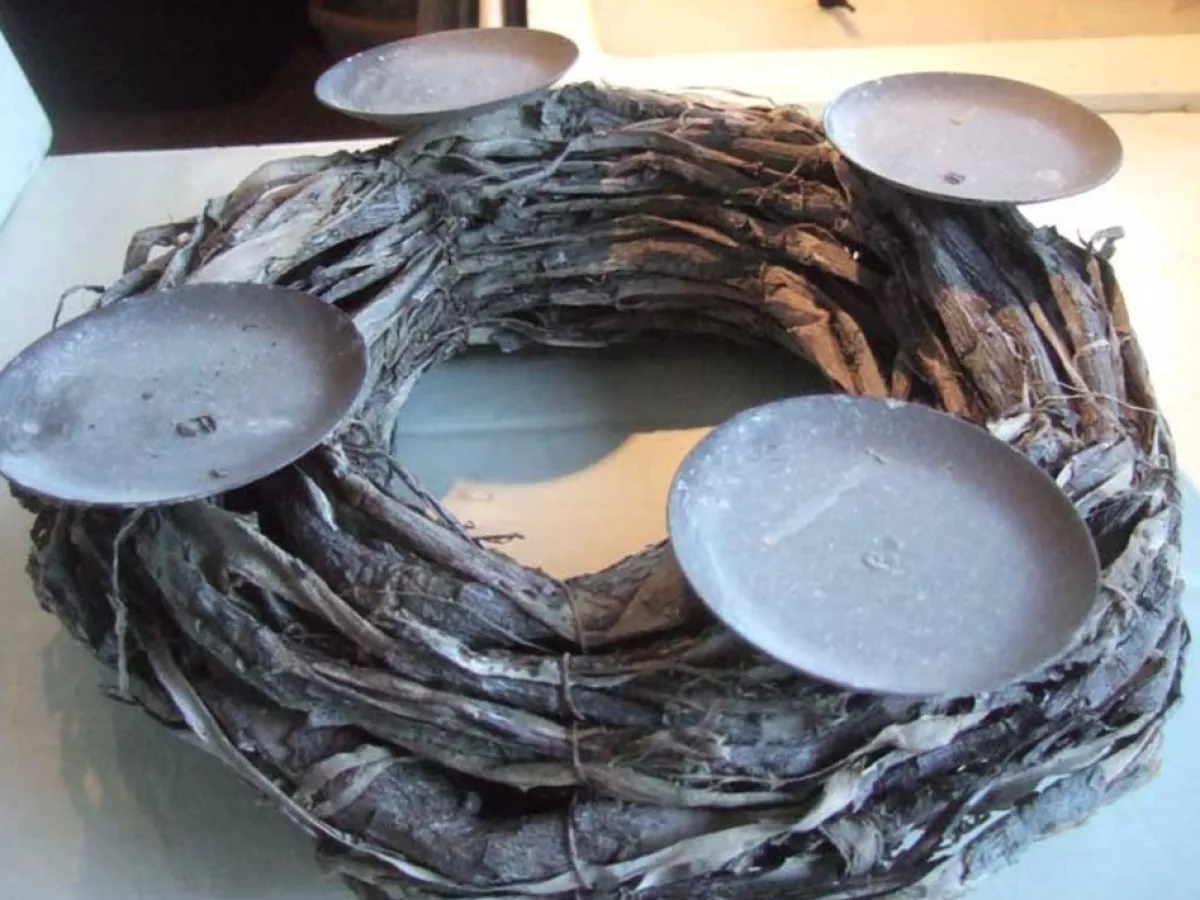 Ronde Krans Met 4 Metalen Houders. Doorsnede 30 Cm En 10 Cm Hoog.