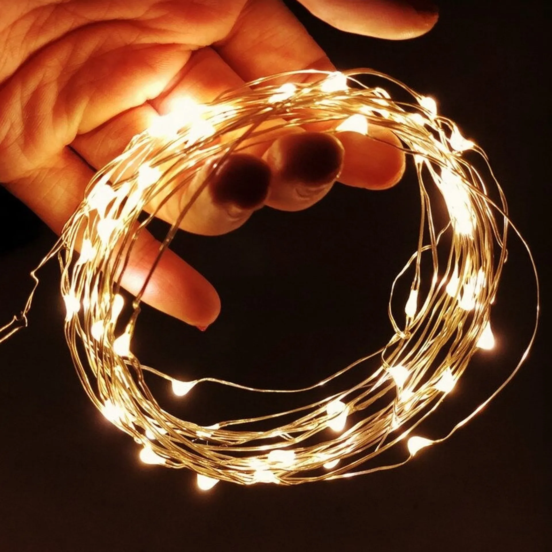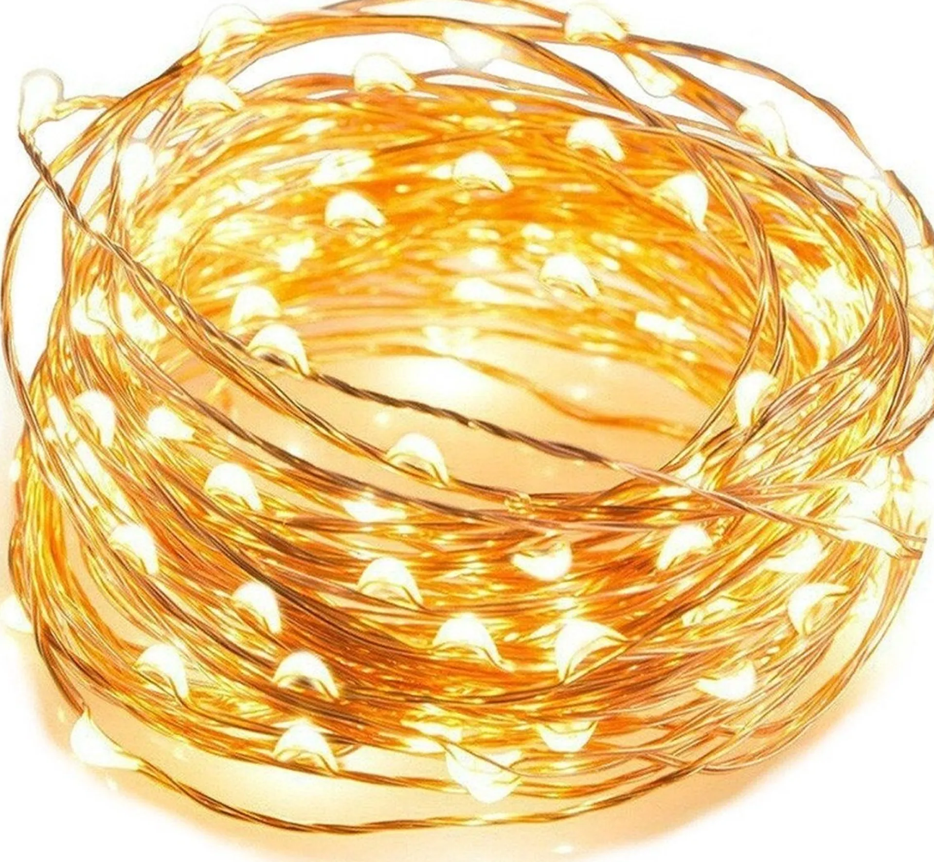 Kerst Koperdraad Led Verlichting – Warm Wit – 5 Meter – Op Batterijen