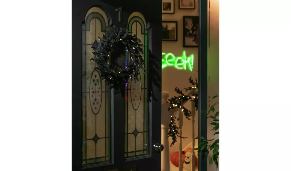 Argos Home Kerstkransen> Voorverlichte Zwarte Halloween Krans Kerstkrans