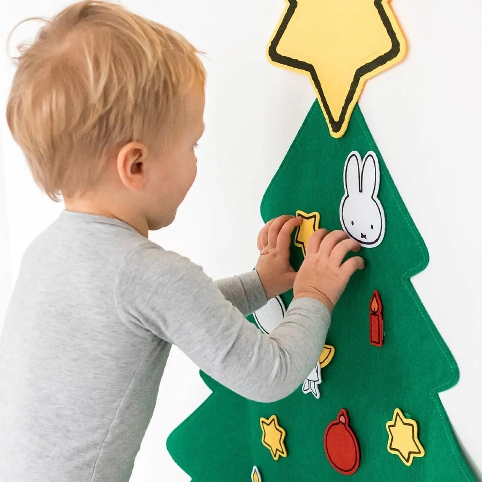 Wil Je Een Echte Nijntje Kerstboom Op Je Eigen Kamer? Dat Kan, Want Deze Vilten Kerstboom Is Alleen Voor Kinderen! Decoreer De Boom Zoals Jij Wilt En Verander Hem Elke Dag Weer Als Je Daar Zin In Hebt. De Figuren (Nijntje, Engeltje, Sterren, Kaarsjes En Ballen) Zijn Voorzien Van Klittenband Waardoor Ze Goed Op De Boom Blijven Hangen En Ook Weer Makkelijk Te Verplaatsen Zijn. Afmeting 100X75 Cm. Na Gebruik Kan De Nijntje Boom Gemakkelijk Worden Opgeborgen In De Handige Meeneemverpakking. Ligt De Boom Na Intensief Gebruik Enigszins In De Kreukels, Dan Kan Deze Op De Laagste Stand Van De Strijkbout En Enkel Aan De Achterzijde Weer Worden Gladgestreken. Eventueel Kun Je Het Vilt Eerst Licht Vochtig Maken Met Een Stoomstrijkijzer Of Plantenspuit. De Vouwen Gaan Er Dan Makkelijk Uit.