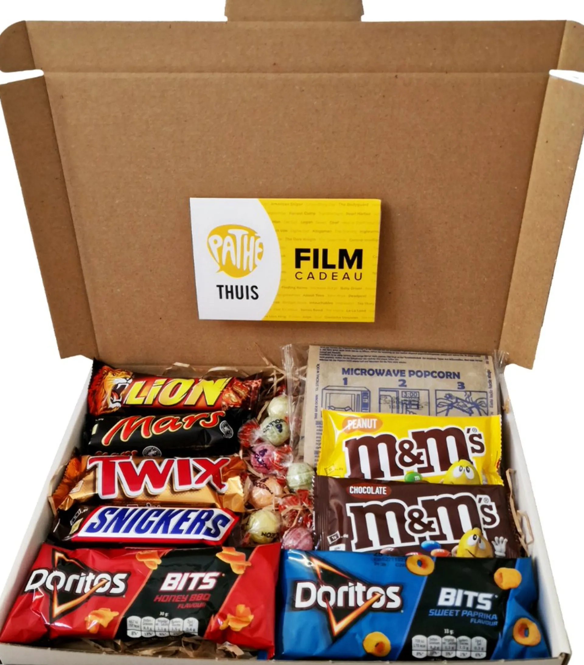 Dit Filmpakket Xl Voor Thuis Is Het Cadeau Wat Je Wilt Geven Voor Kerst, Sinterklaas Of Andere Gelegenheden. Het Pakket Is Gevuld Met Allerlei Lekkernijen Die Je Maar Kan Bedenken En Bevat Ook Nog Is Een Pathe Hd Film Om Zo Je Favoriete Film Te Kunnen Kijken Met Je Favoriete Lekkernijen!