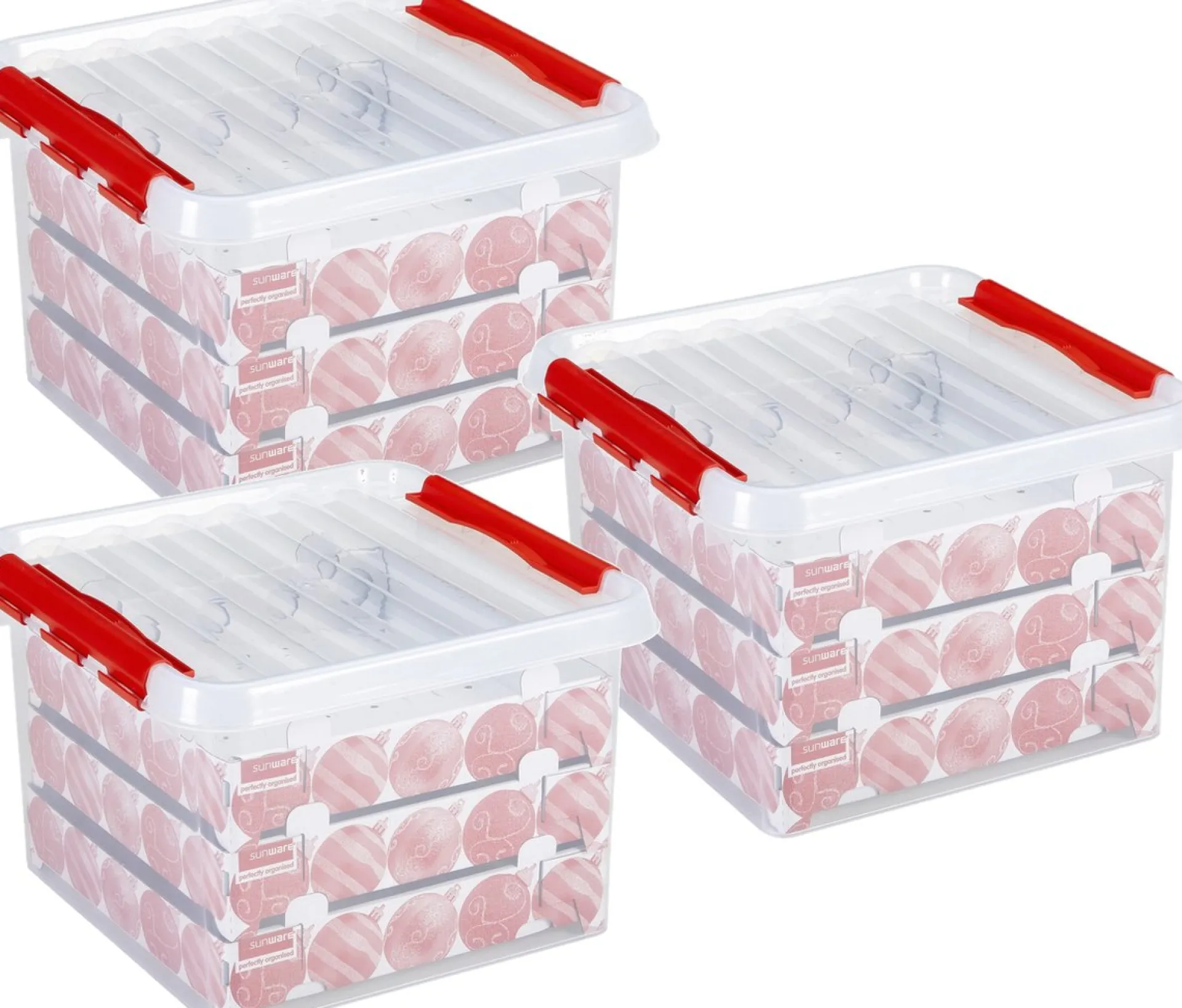 Bellatio Decorations 3X Kerstballen Opruimen Opbergboxen 26 Liter – Voor In Totaal 225 Kerstballen – Kerstversiering/Kerstdecoratie Opruimen/Opbergen Flash Sale