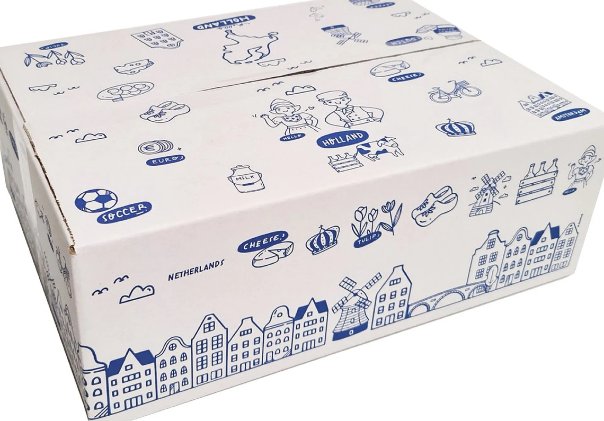 Uiteraard Verpakt In Een Feestelijke Bijpassende Geschenkdoos Met Opdruk Van Hollandse Gevelhuisjes.