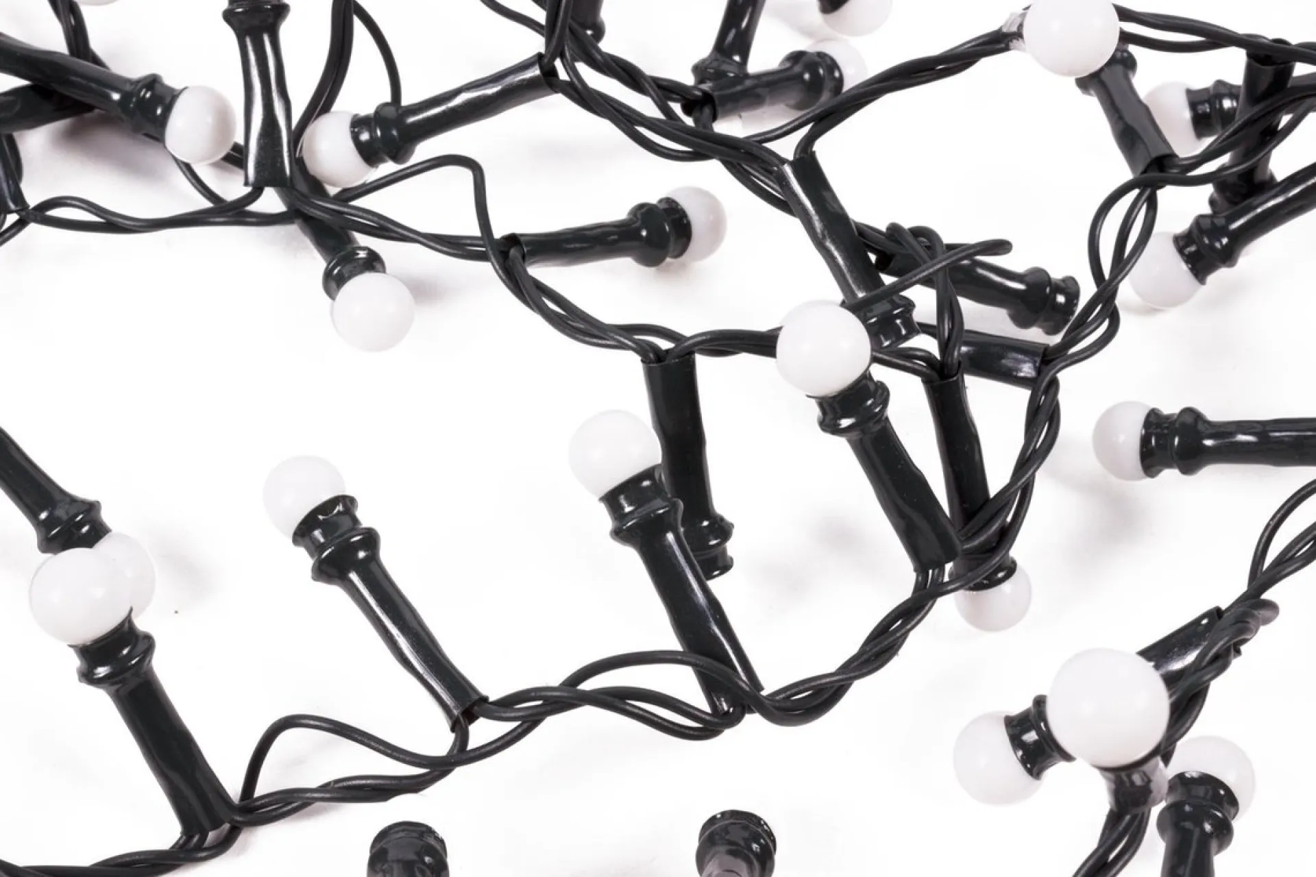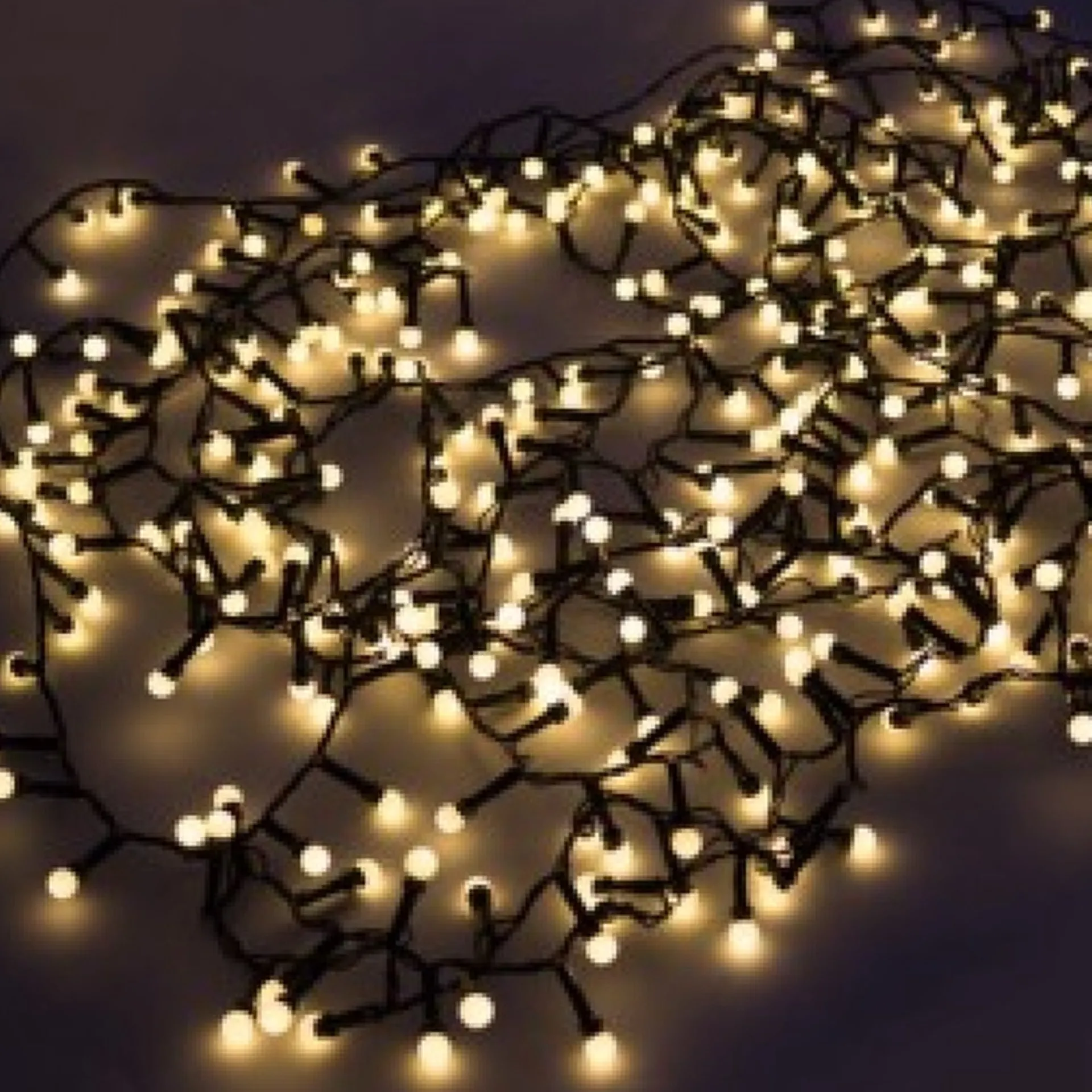 Lichtsnoer Met Twinkelende Lichtjes Van Compact Formaat. Deze Lichtslinger Bevat Kersvormige Bollen. Voor Binnen En Buiten Gebruik.