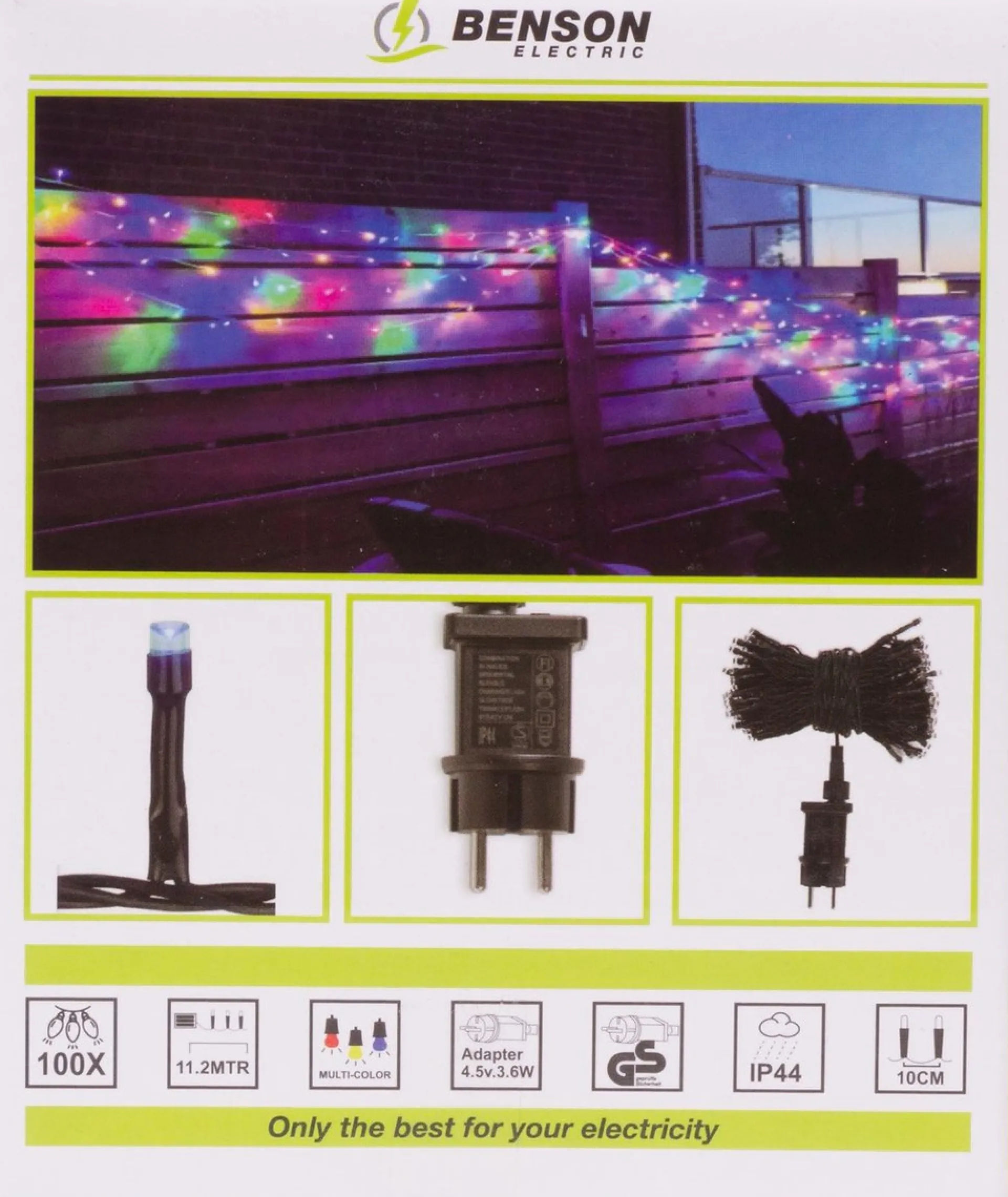 Lichtsnoer Met ‘Klassieke’ Gekleurde Lampjes. Je Kunt De Lichtslinger Zowel Binnen Als Buiten Gebruiken. Voorzien Van Een Transformator.
