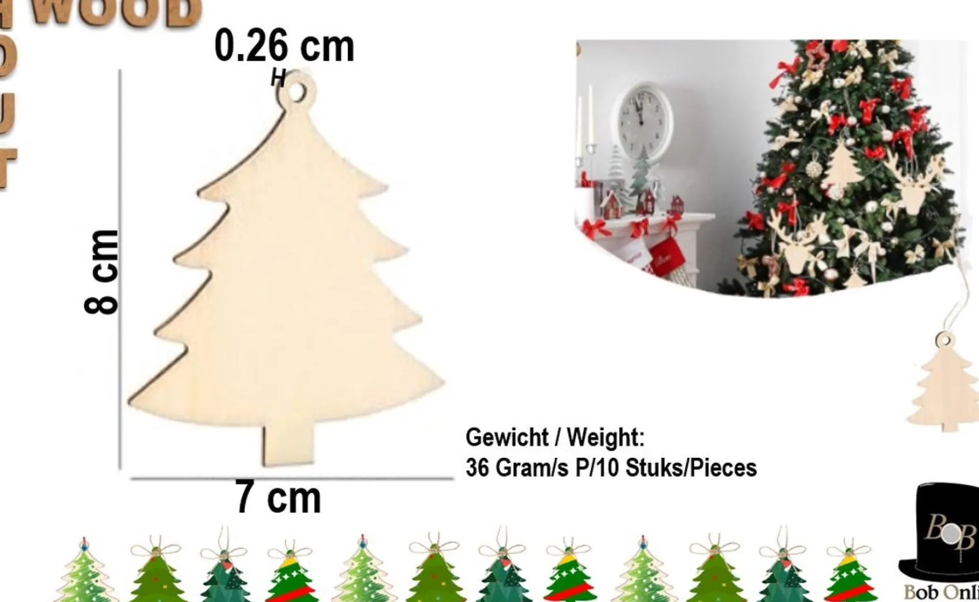 Wil Jij Jouw Kersttafel Dit Jaar Een Unieke En Sfeervolle Touch Geven? Dan Zijn Deze 10 Stuks Houten Kerstboom Vormen Van Bob Online™ Perfect Voor Jou! Met Afmetingen Van (L)8Cm X (B)7Cm X (H)0.26Cm Zijn Ze Ideaal Als Kerstdecoratie Object. Verf Ze In Jouw Favoriete Kleuren, Breng Er Foto’s Op Aan, Glitter Ze En Meer. Laat Je Creativiteit De Vrije Loop! Ontdek Nu Deze Prachtige Houten Kerstboom Schijven En Geef Jouw Kerstboomversiering Een Persoonlijke Touch!