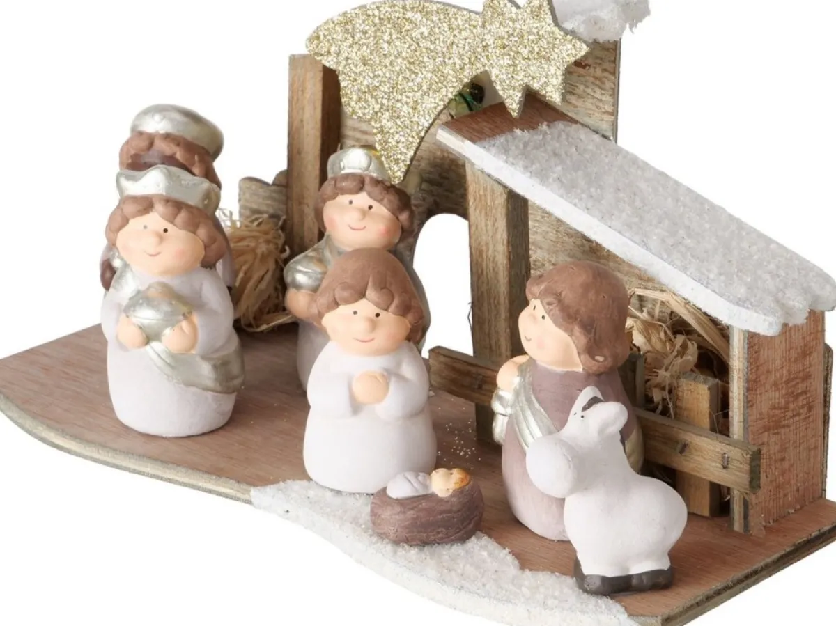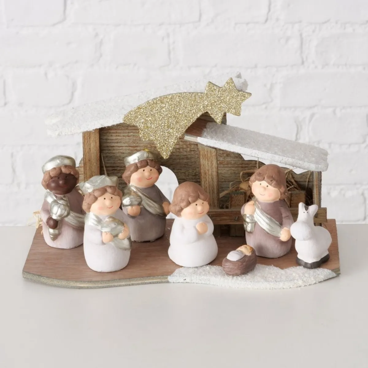Schattig Kerststalletje.Gemaakt Van Hout Met Figuurtjes Van Polyresin.3 Koningen, Maria, Jozef En Jezus Afmetingen: Len…