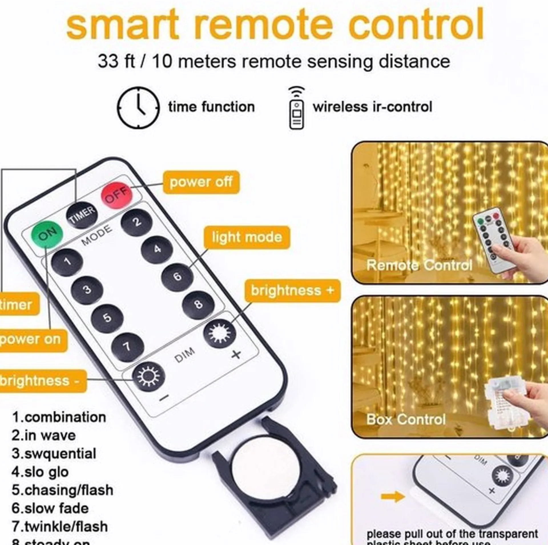 [Size] De 200 Led Opknoping Fee Lichten Hebben 10 Strings Van Lichten. Elke String Heeft 20 Geleide Bollen. De Lengte Van Verlengsnoer Is 9.8 Voet. De Grootte Van De Gordijnlichten Is 6.5 Ft*6.5 Ft.