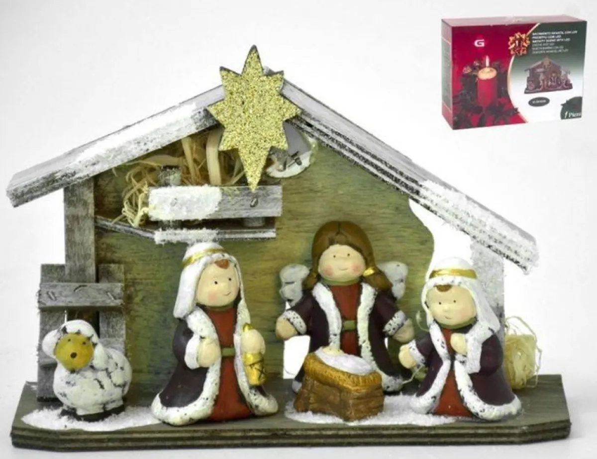 Kerststal Hout Kinderen Maat 22.5X16 Cm. Inkl. Verlichting.