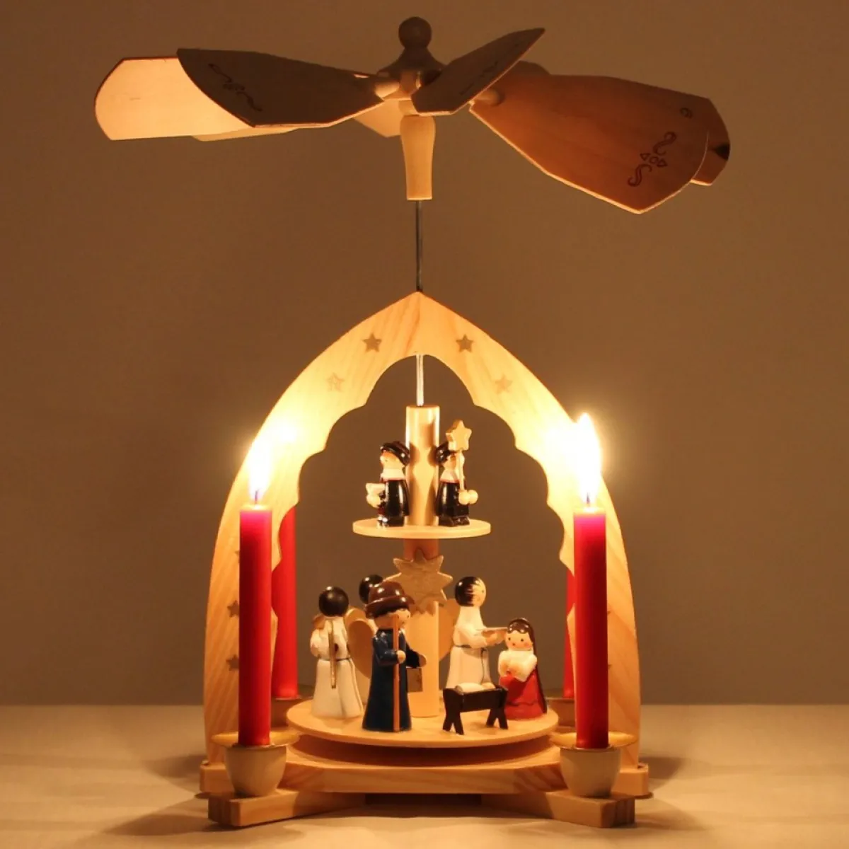 Beleef Een Waar Spektakel Wanneer De Kaarsen In De Kandelaars De Lucht Erboven Verwarmen En Het Schoepenrad Van De Piramide Begint Te Bewegen, Alsof Het Door Een Spookachtige Hand Wordt Aangedreven. Geniet Van De Voorstelling Van Het Flikkerende Spel Van Licht En Schaduw Dat De Kamer Vult.