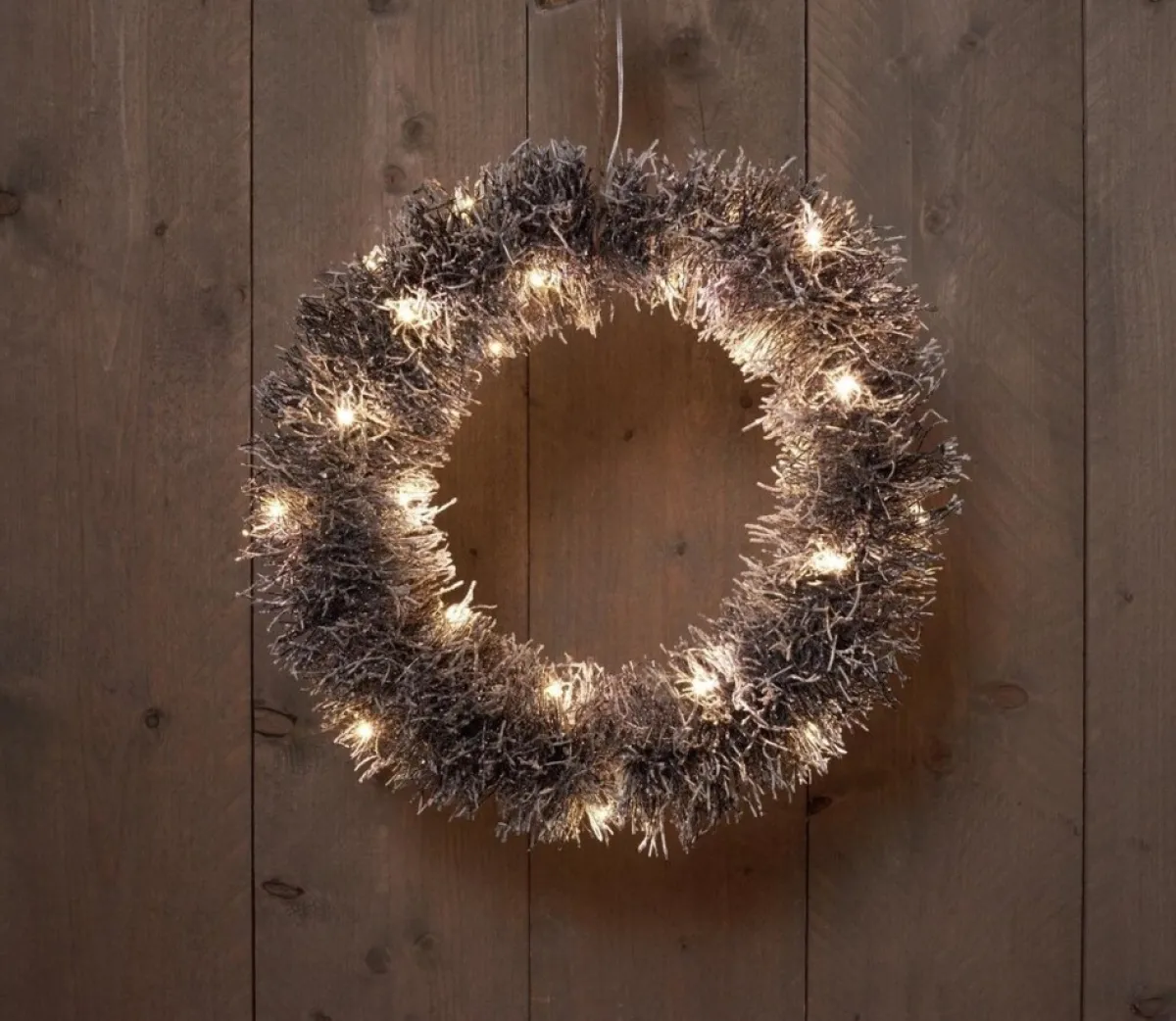 Rotan Krans Zwart/Sneeuw – 30 Lampjes – 40 Cm Hoog.