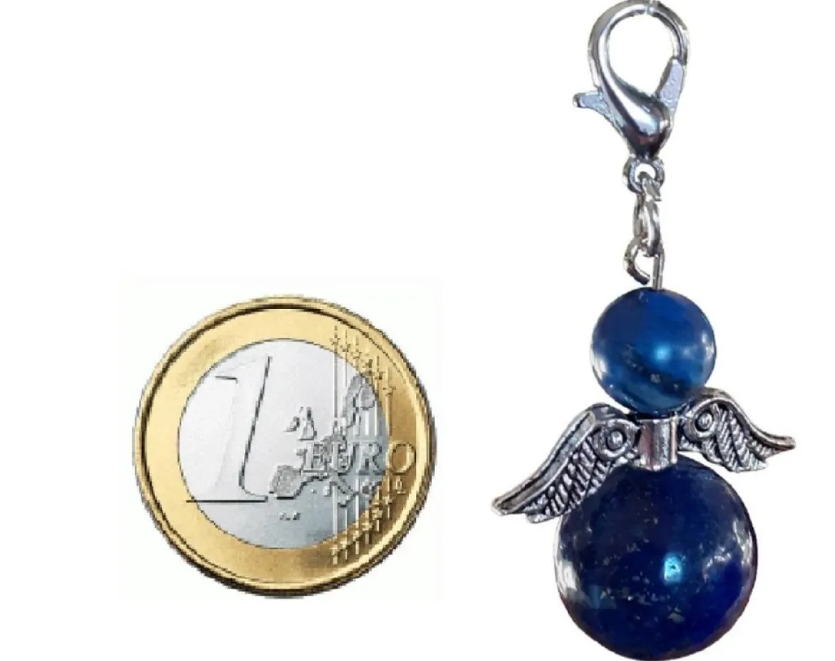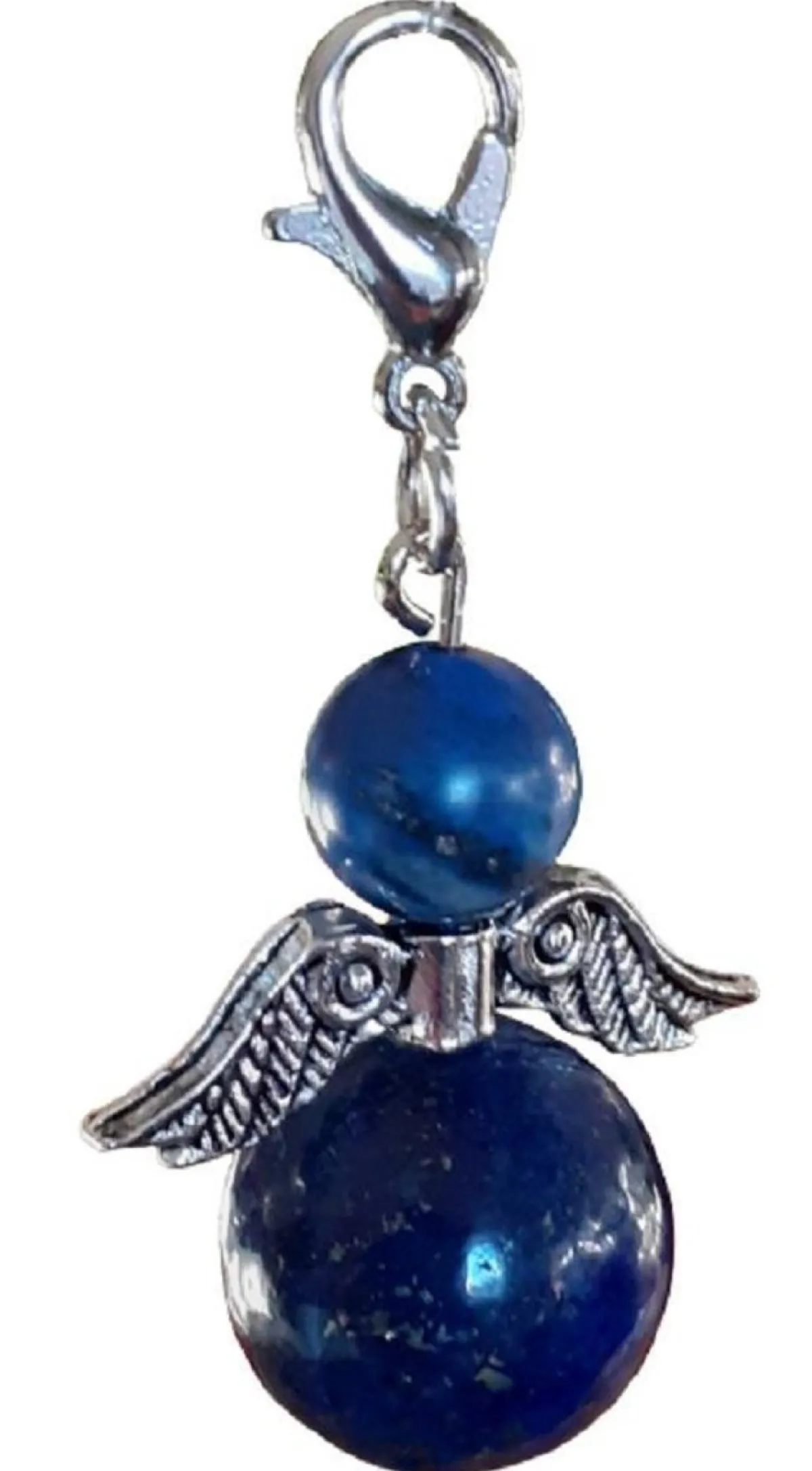 Handvervaardigde Kleine Beschermengel Welke Gemaakt Is Met Behulp Van Kralen Van De Halfedelsteen Lapislazuli . De Onderste Kraal Heeft Een Diameter Van 14 Mm En De Bovenste Kraal Heeft Een Diameter Van 8 Mm.