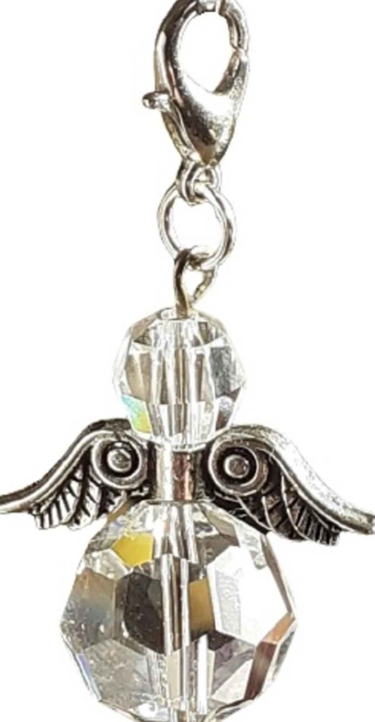 CC Kerstbeelden>Raamhanger Beschermengel , Hand Vervaardigd Uit Swarovski Kristallen . ( Bescherm Engel , Kettinghanger , Sleutelhanger ) , Zilver