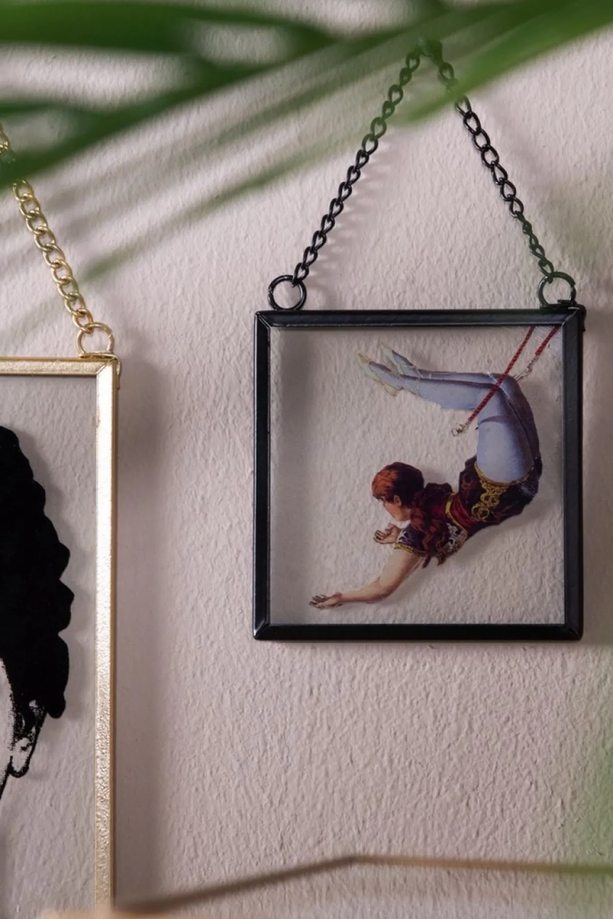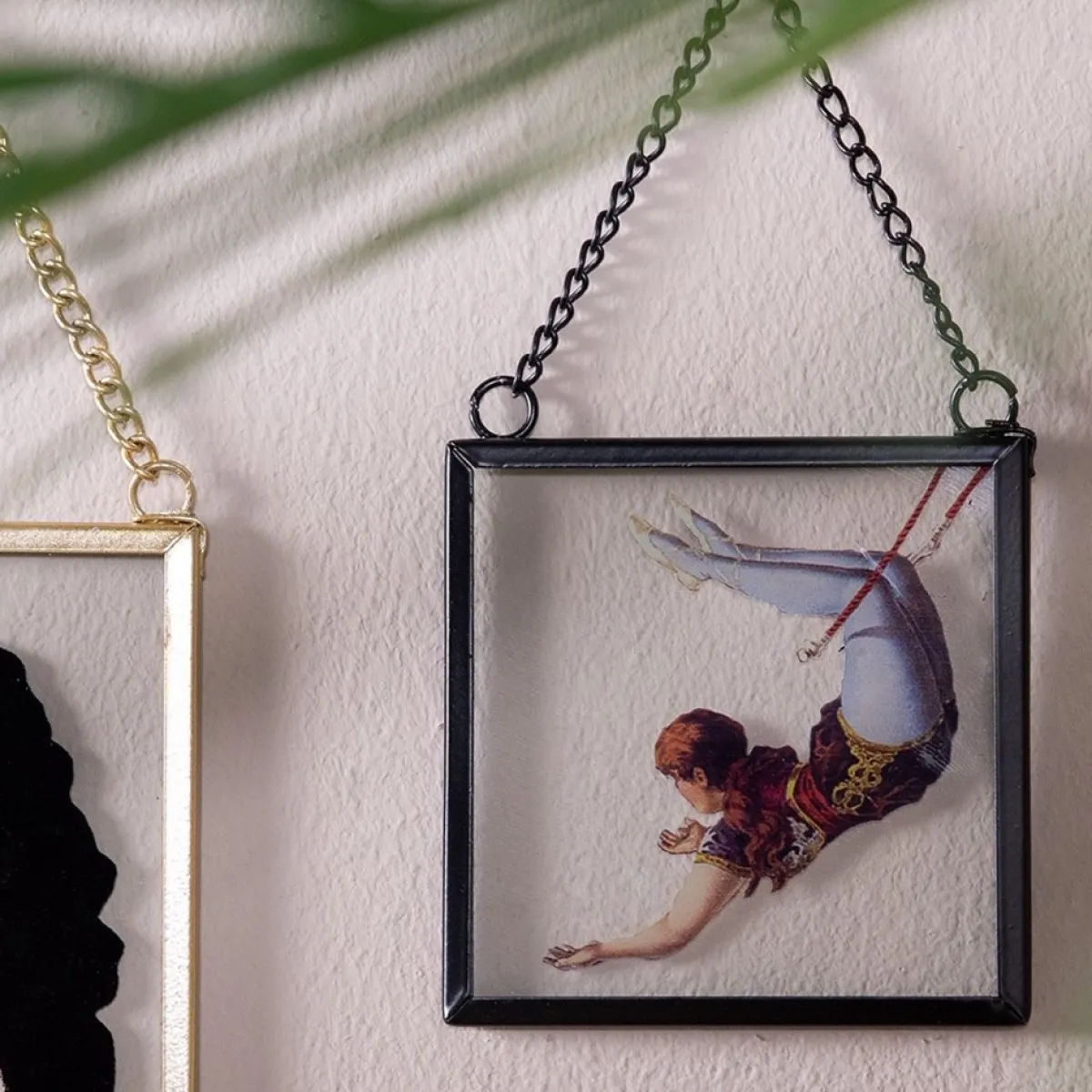 Hanger Van Glas Met Zwart Metalen Frame En In Kleur Een Opdruk Van Een Circusartiest Van Het Merk Clayre & Eef In Elegante Stijl Met Een Klassieke Uitstraling