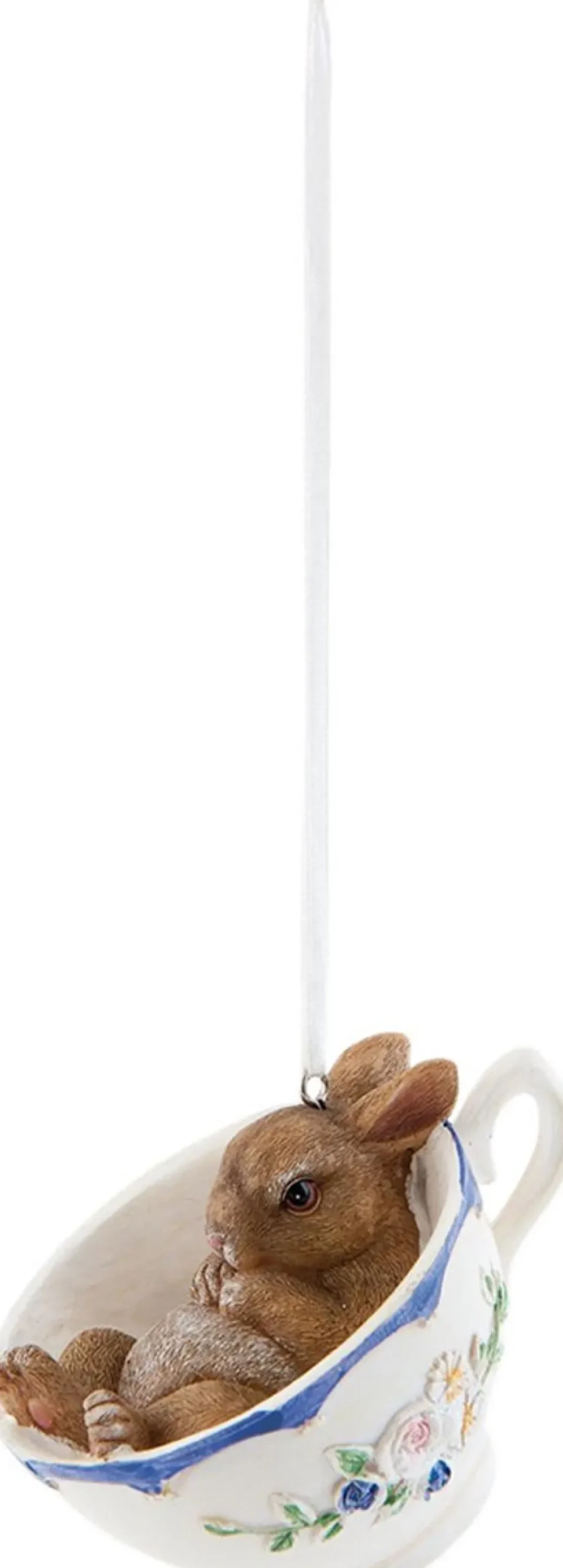 Kunststof Hanger Paasdecoratie Bruin Konijn In Een Wit Kopje Van Het Merk Clayre & Eef