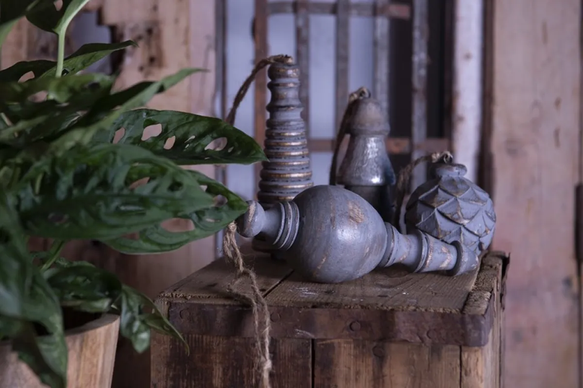 Decoratieve Landelijke Grijs Bruine Houten Hangend Ornament Aan Een Touw, Van Het Merk Clayre & Eef.