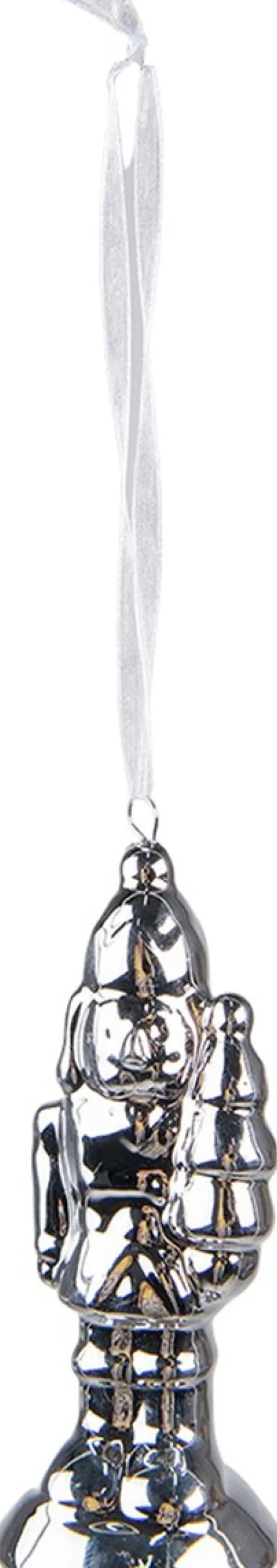 Decoratieve Zilverkleurige Kersthanger, In De Vorm Van Een Notenkraker, Gemaakt Van Porselein, In Een Moderne Stijl, Van Het Merk Clayre & Eef. Afmeting 4X4X10 Cm.