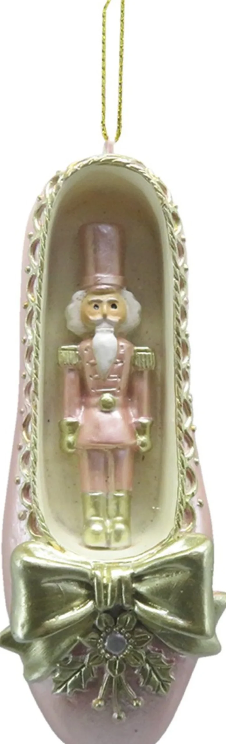 Roze Landelijke Decoratieve Hanger Van Een Notenkraker In Een Balletschoen Van Het Merk Clayre & Eef.