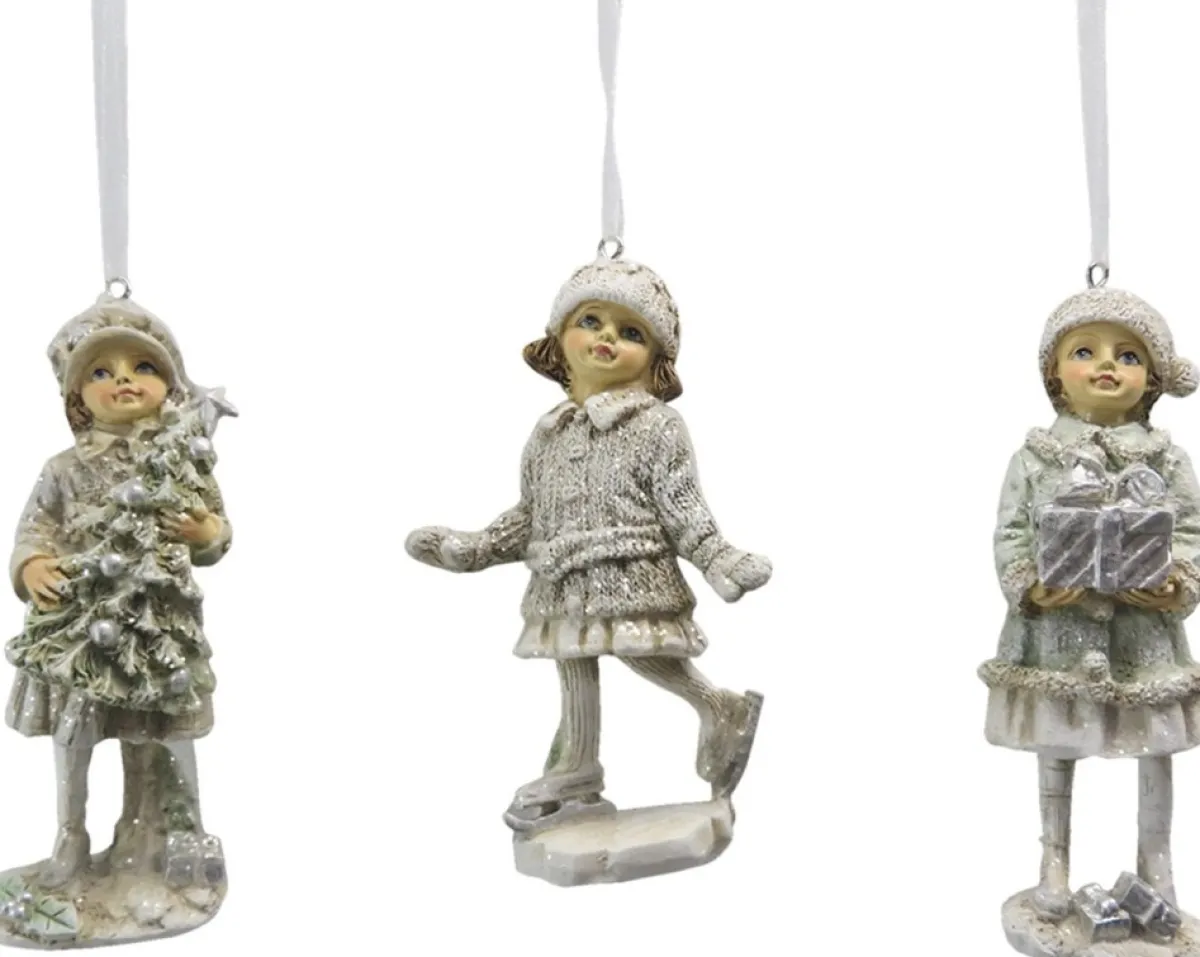 Set Van Drie Beige Met Groene Decoratieve Hangers Van Kinderen.