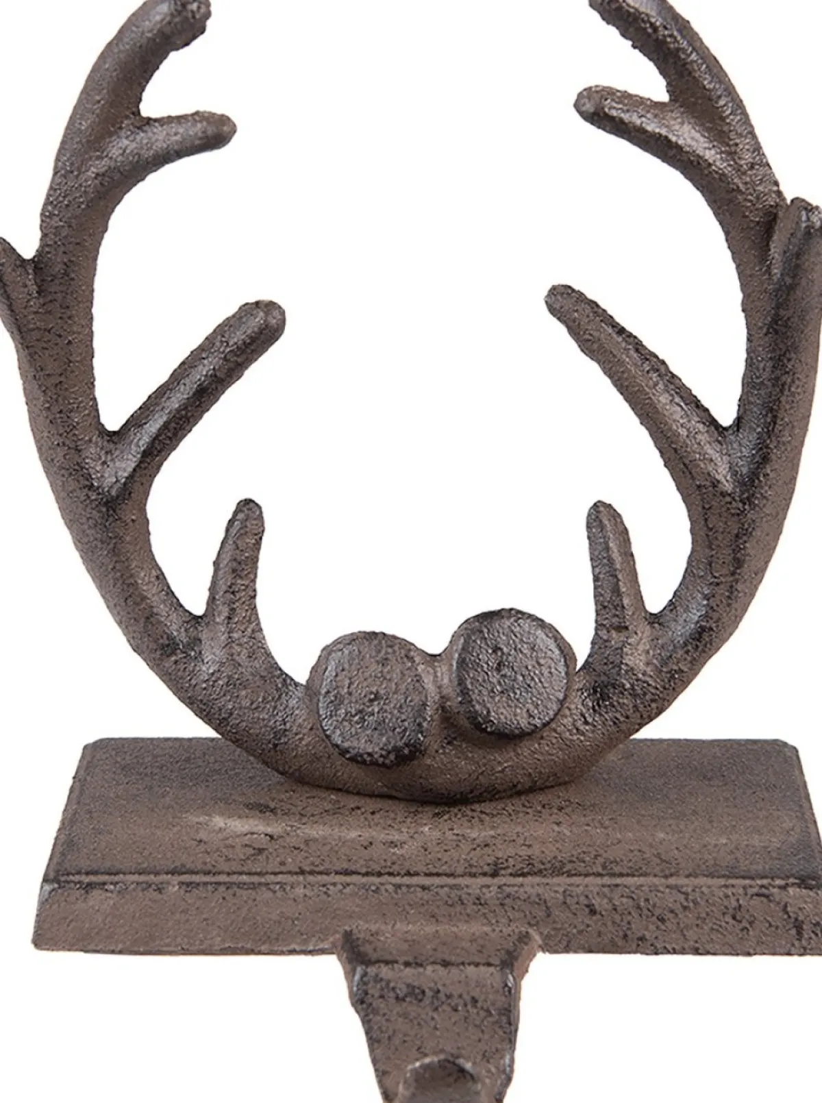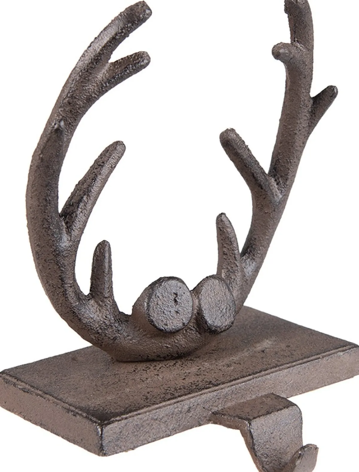 Voor De Ideale Kerstsfeer, Decoratieve Bruine Ijzeren Kerstsok Hanger, In De Vorm Van Een Gewei, In Een Landelijke Stijl, Van Het Merk Clayre & Eef.