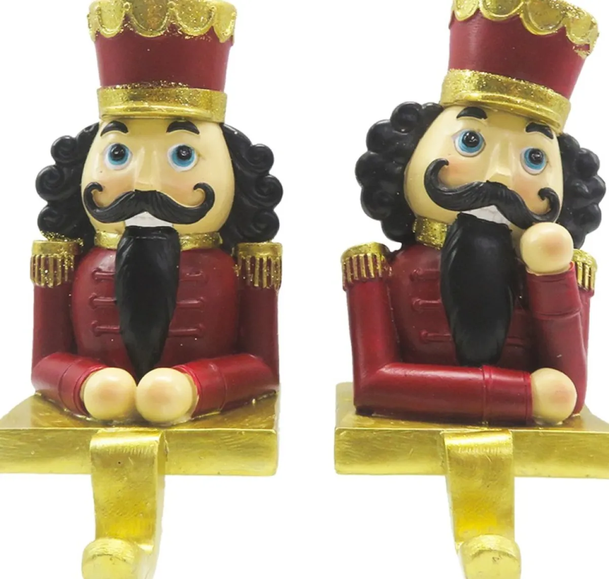 Decoratieve Kerst Sokhangers In De Vorm Van Notenkrakers In De Kleur Rood Met Goudkleurig Van Het Merk Clayre & Eef.
