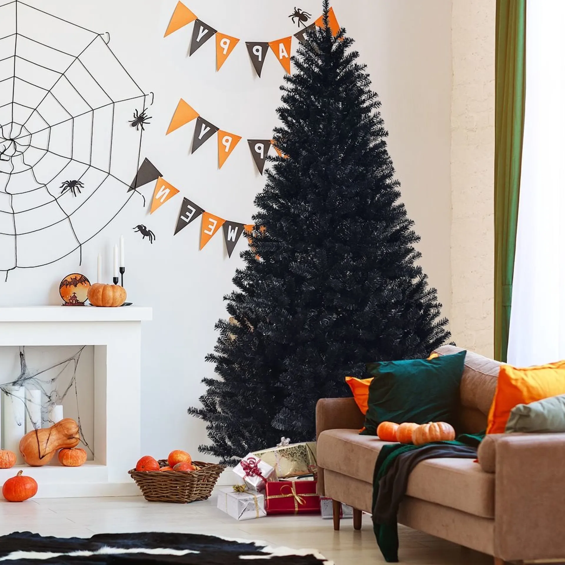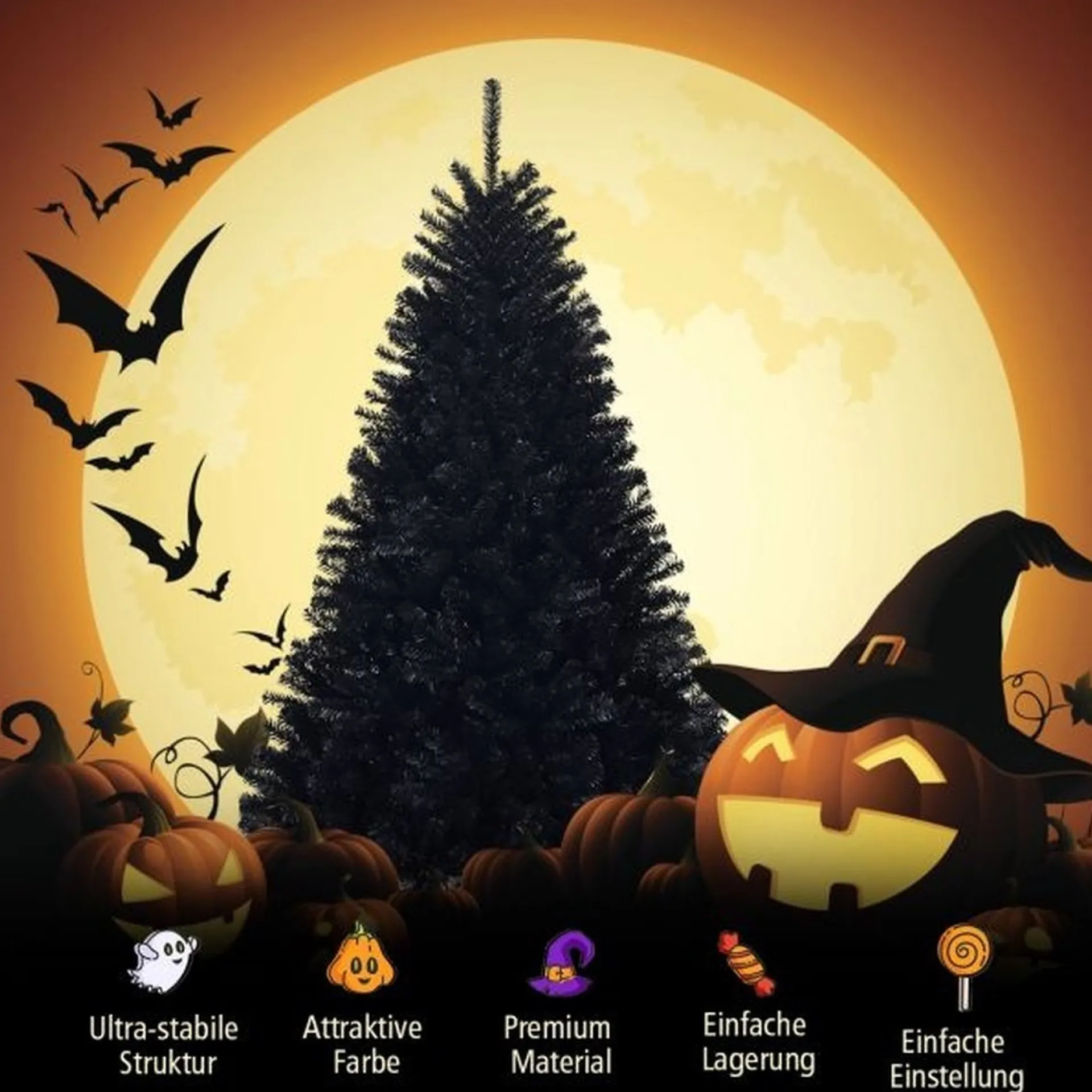 Deze Boom Is Hoog, Dicht En Pluizig Met 1258 Takken Die Een Geweldige Decoratie Vormen Voor Halloween. De Takken Zijn Gemaakt Van Geurloos Pvc-Materiaal Dat Sterk En Waterdicht Is. De Metalen Standaard Biedt Grote Stabiliteit En Stevigheid Om De Boom Recht Te Houden In De Wind. Je Kunt De Halloween Kerstboom Zowel Binnen Als Buiten Gebruiken. Bovendien Zijn De Takken Met Scharnieren Aan De Stam Verbonden, Zodat De Boom In Korte Tijd Moeiteloos Kan Worden Opgezet. Met Zijn Volledig Zwarte Uiterlijk Is Het Een Geweldige Aanvulling Op Uw Huis, Kantoor, Winkel, Enz.