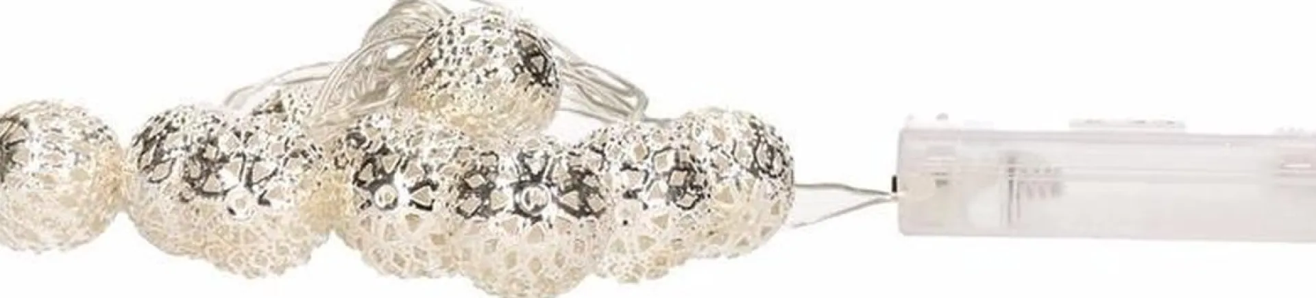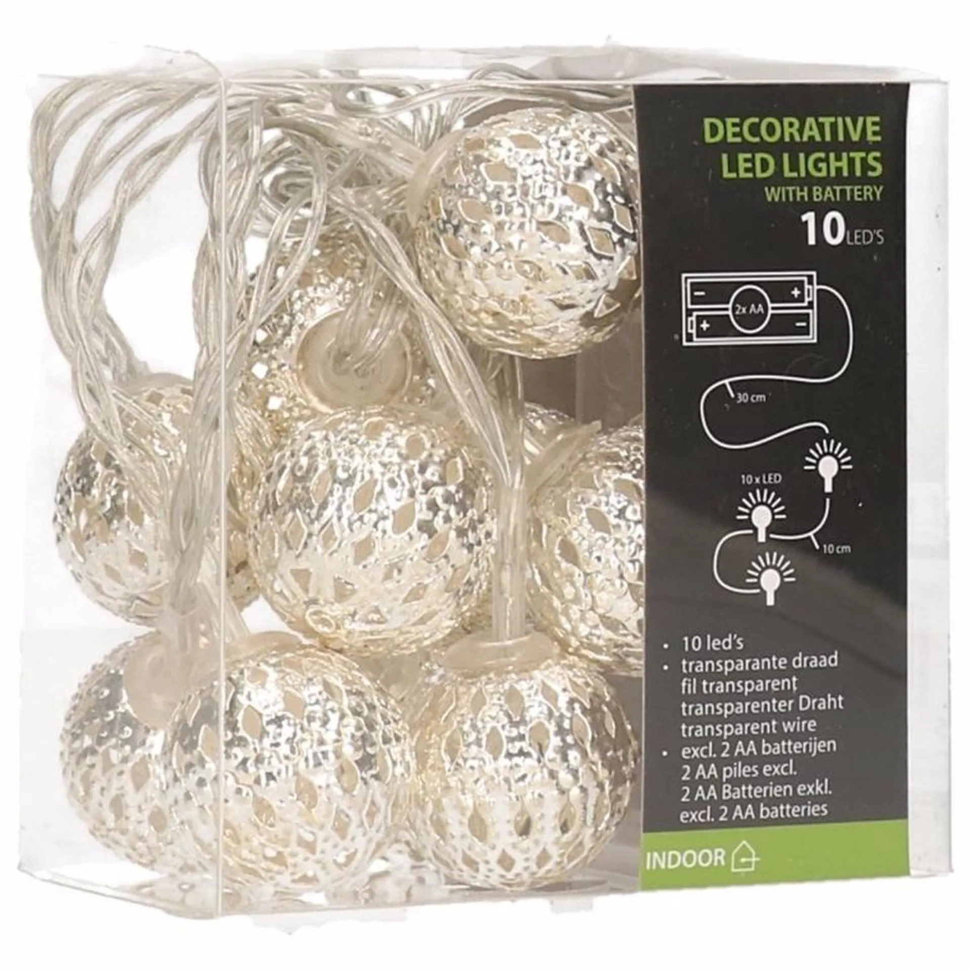 Kerstverlichting Kerstballen Slinger Met Led Licht 90 Cm. Een Snoer Met 10 Glazen Zilverkleurige Bollen/ Kerstballen Met Wit Led Licht. Een Lichtsnoer Werkt Op 2 Aa Batterijen (Niet Inbegrepen). Alleen Geschikt Voor Gebruik Binnenshuis. Diameter Balletjes: Ongeveer 2 Cm.Kerstverlichting Kerstlampjes/Kerstlichtjes Lichtsnoeren Met Kerstballen.
