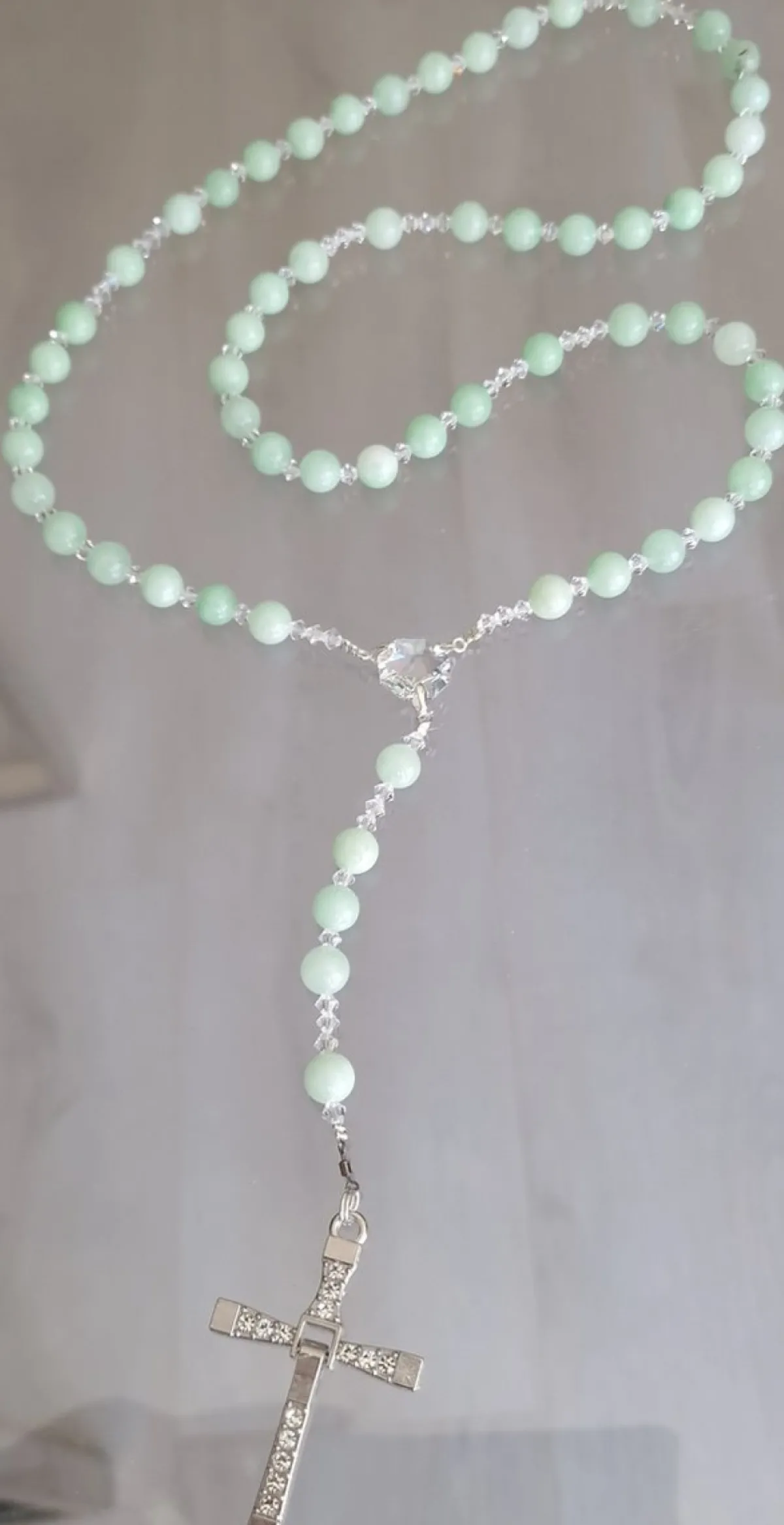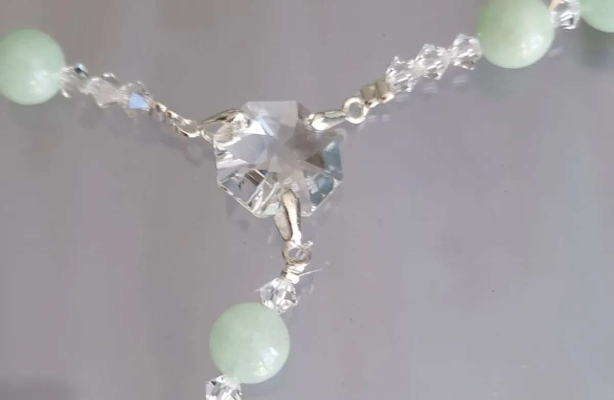 Door Het Gebruik Van De Kleur Jade In Combinatie Met Het Swarovski Kristal Heeft De Rozenkrans Een Chique Uitstraling.