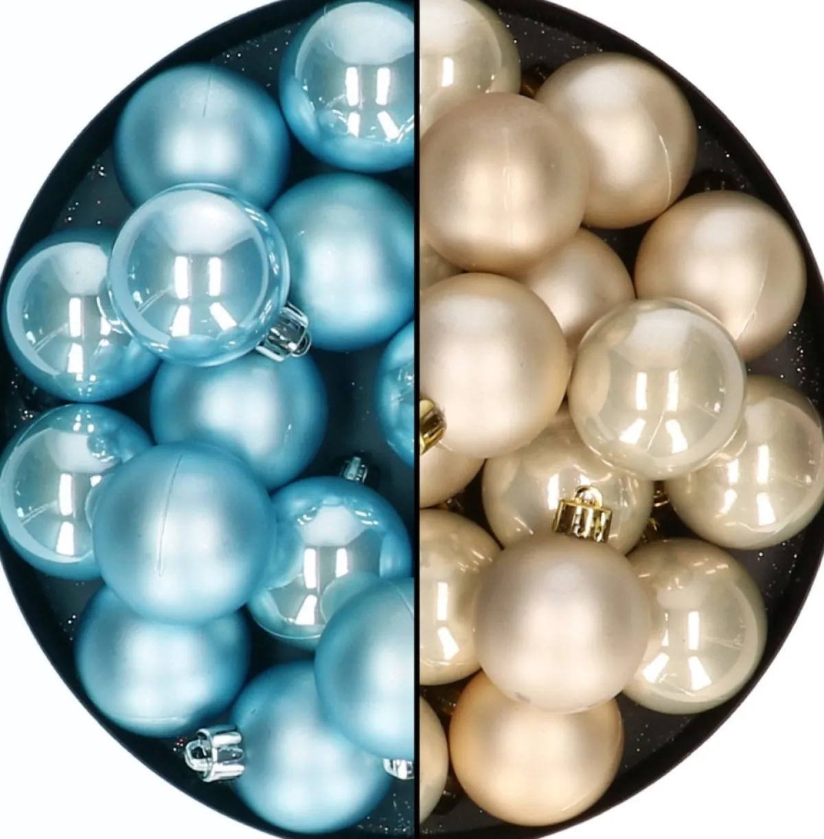 Kleine Kerstballen 32X Stuks In Een Mix Van Champagne En Ijsblauw. Deze Set Bestaat Uit 16 Kerstballen In De Kleur Ijsblauw En 16 Kerstballen In De Kleur Champagne. De Kerstballen Hebben Een Diameter Van 4 Cm En Zijn Gemaakt Van Kunststof. Wij Adviseren Je Om Kerstbalhaakjes Mee Te Bestellen. Kerst Versiering/Decoratie Voor Het Optuigen Van Uw Kerstboom.
