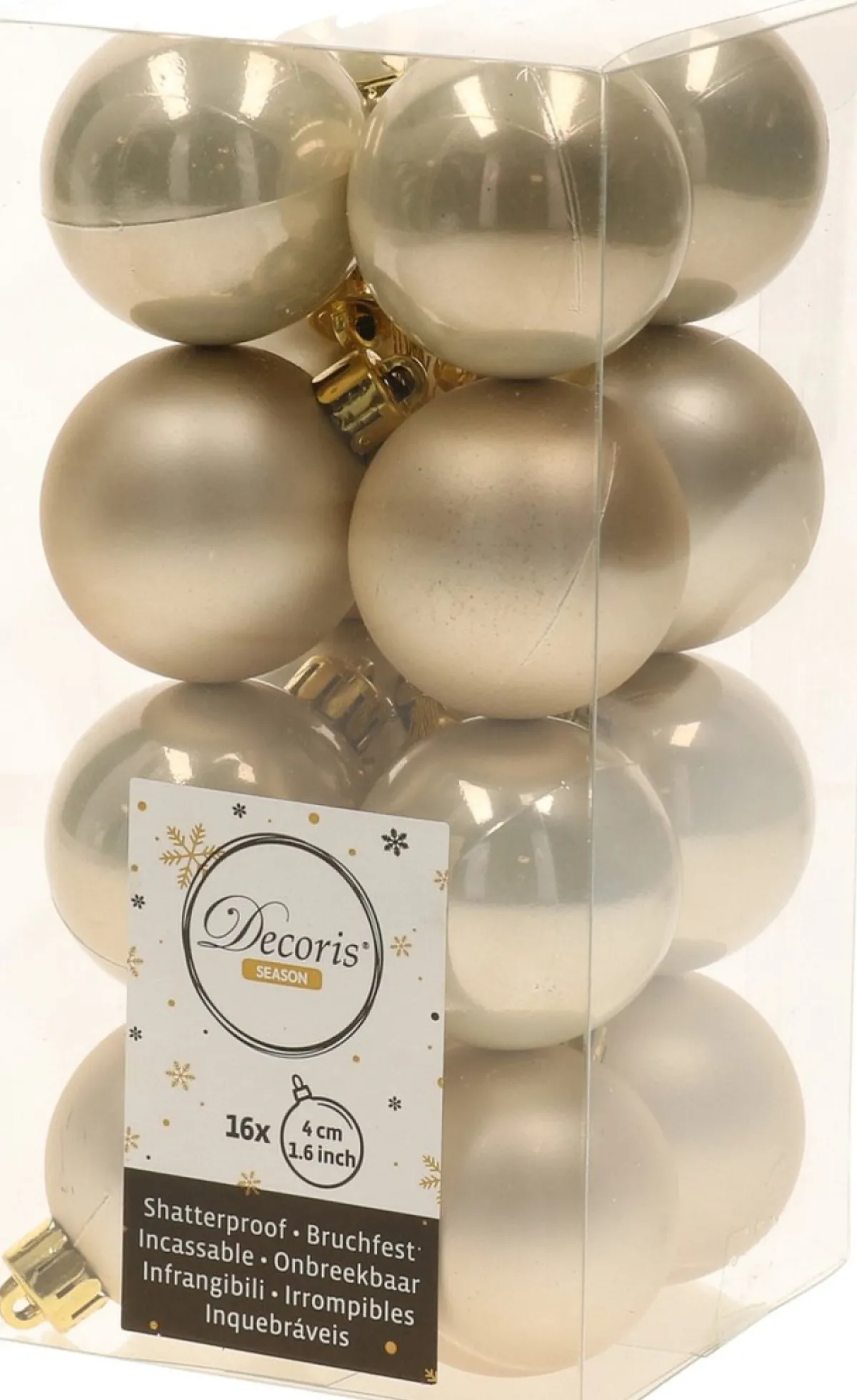 - 1X 16X Licht Parel/Champagne Kerstballen 4 Cm Kunststof Mat/Glans