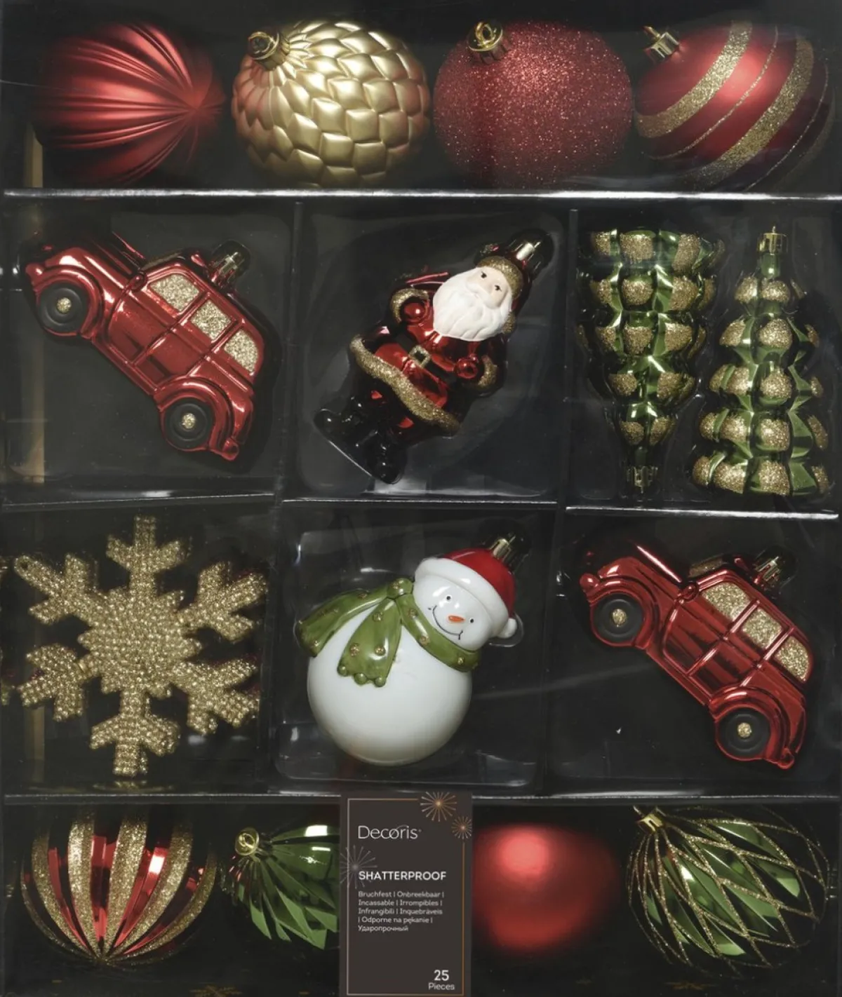 Decoris Kerstboomversieringen>Kerstballen Mixdoos 25 St. | Rood/Groen/Goud