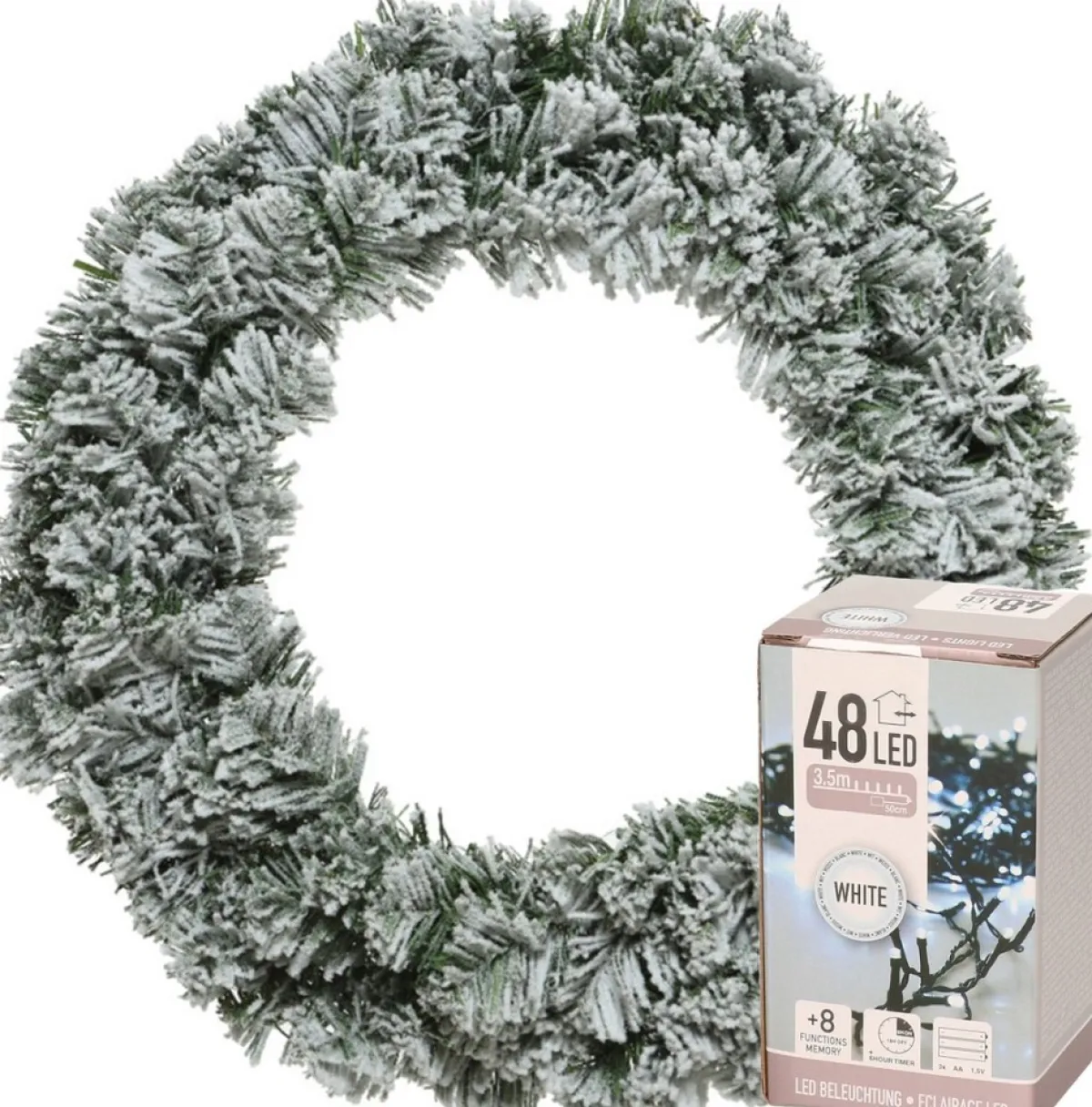 Kerstkrans/Dennenkrans Groen Met Sneeuw 35 Cm Incl. Verlichting Helder Wit. Kerstkrans/Dennenkrans Inclusief Verlichting Helder Wit. Aantal Lampjes: 48. Lengte Lichtsnoer: 4 Meter. Formaat Krans: D35Cm.