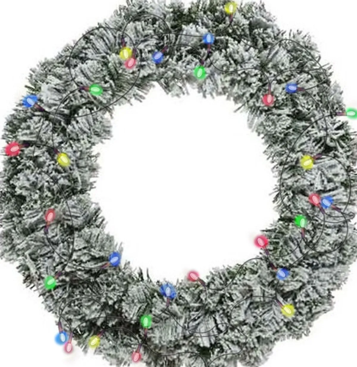 Kerstkrans/Dennenkrans Groen Met Sneeuw 40 Cm Incl. Verlichting Gekleurd. Kerstkrans/Dennenkrans Inclusief Verlichting Gekleurd. Aantal Lampjes: 48. Lengte Lichtsnoer: 4 Meter. Formaat Krans: D40Cm.