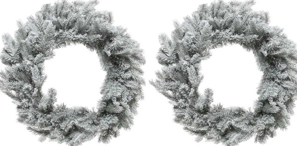 2X Stuks Kerstkransen/Dennenkransen Groen Met Sneeuw 50 Cm. Diameter: 50 Cm. Dikte: 8 Cm.