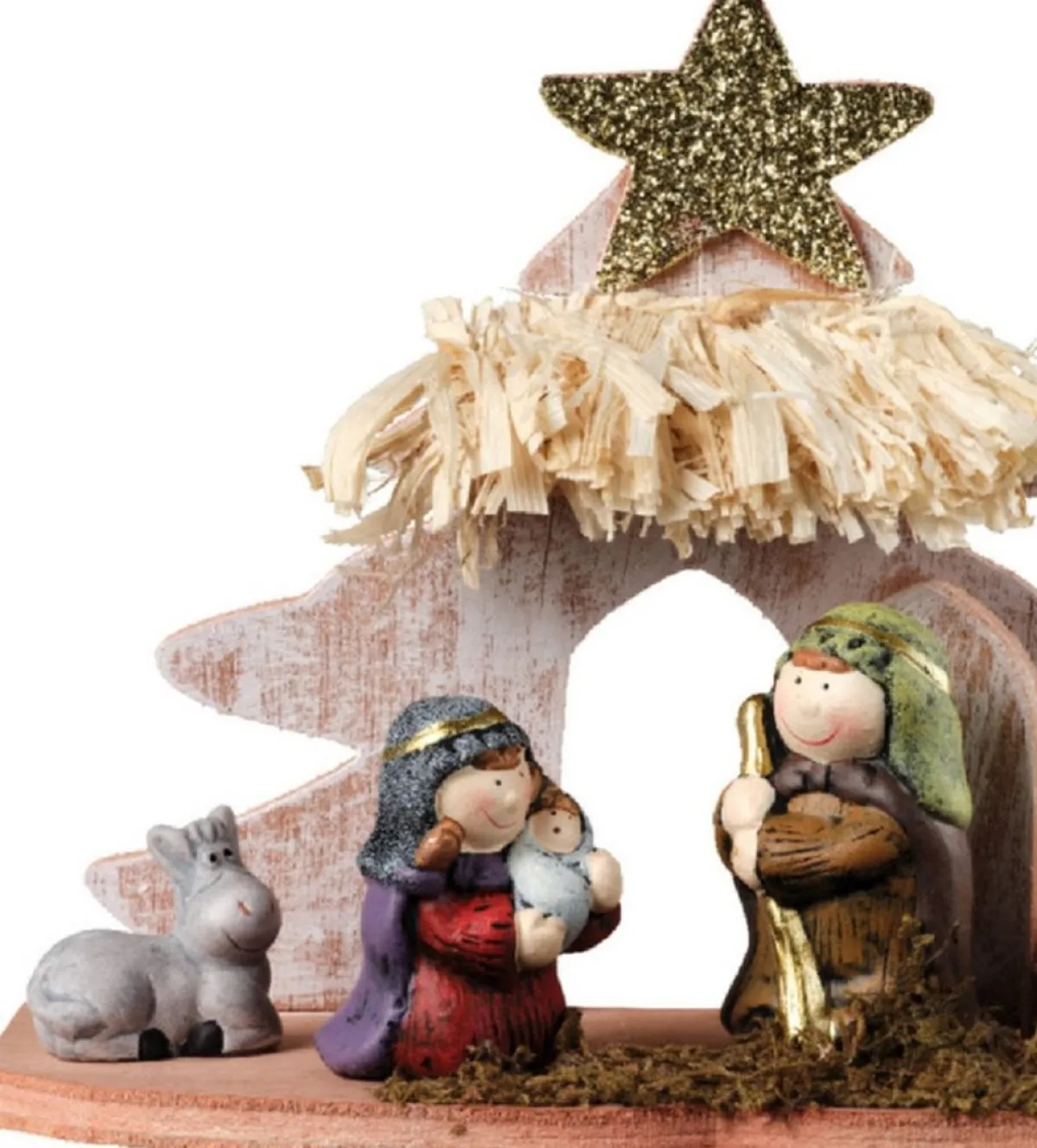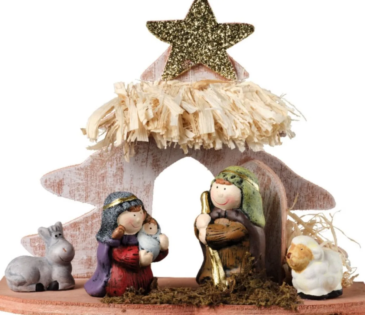 Kinder/Kinderkamer Kerststal Met Beelden/ Kerstfiguren. Het Formaat Van Dit Stalletje Is Ongeveer L20 X B8 X H16,5 Cm. De Stal Is Gemaakt Van Mdf Hout En De Kerststal Beeldjes Zijn Gemaakt Van Terracotta. Kerststallen Decoratie Voor Kinderen/Kinderkamer.