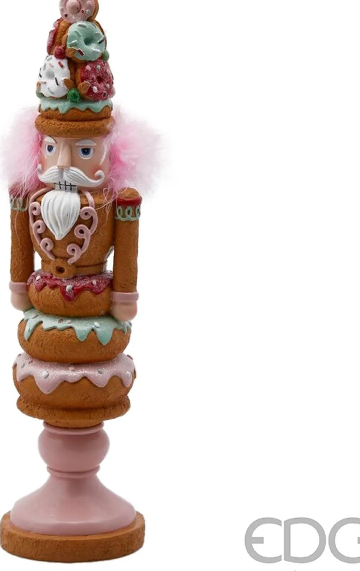 Voeg Een Vleugje Zoetheid En Charme Toe Aan Je Kerstdecor Met Deze Prachtige Roze Kerst Notenkraker Van Viv! Christmas. Deze Betoverende Notenkraker Draagt Een Hoed Gemaakt Van Pastelkleurige Donuts En Heeft Een Lichaam Dat Bestaat Uit Geglazuurde Donuts Met Sprankelende Spikkels. Zijn Versieringen Van Icing Voegen Een Feestelijke Touch Toe, Terwijl Zijn Lichtroze Weelderige Haar Een Extra Vleugje Speelsheid Biedt. Dit Exclusieve Kerstbeeld Past Perfect In Het Roze ‘Candyland’ Kerstthema, Waar Taarten En Snoepjes De Hoofdrol Spelen. Voeg Deze Bijzondere Roze Notenkraker Toe Aan Je Kerstcollectie Voor Een Vrolijke En Luxe Uitstraling.
