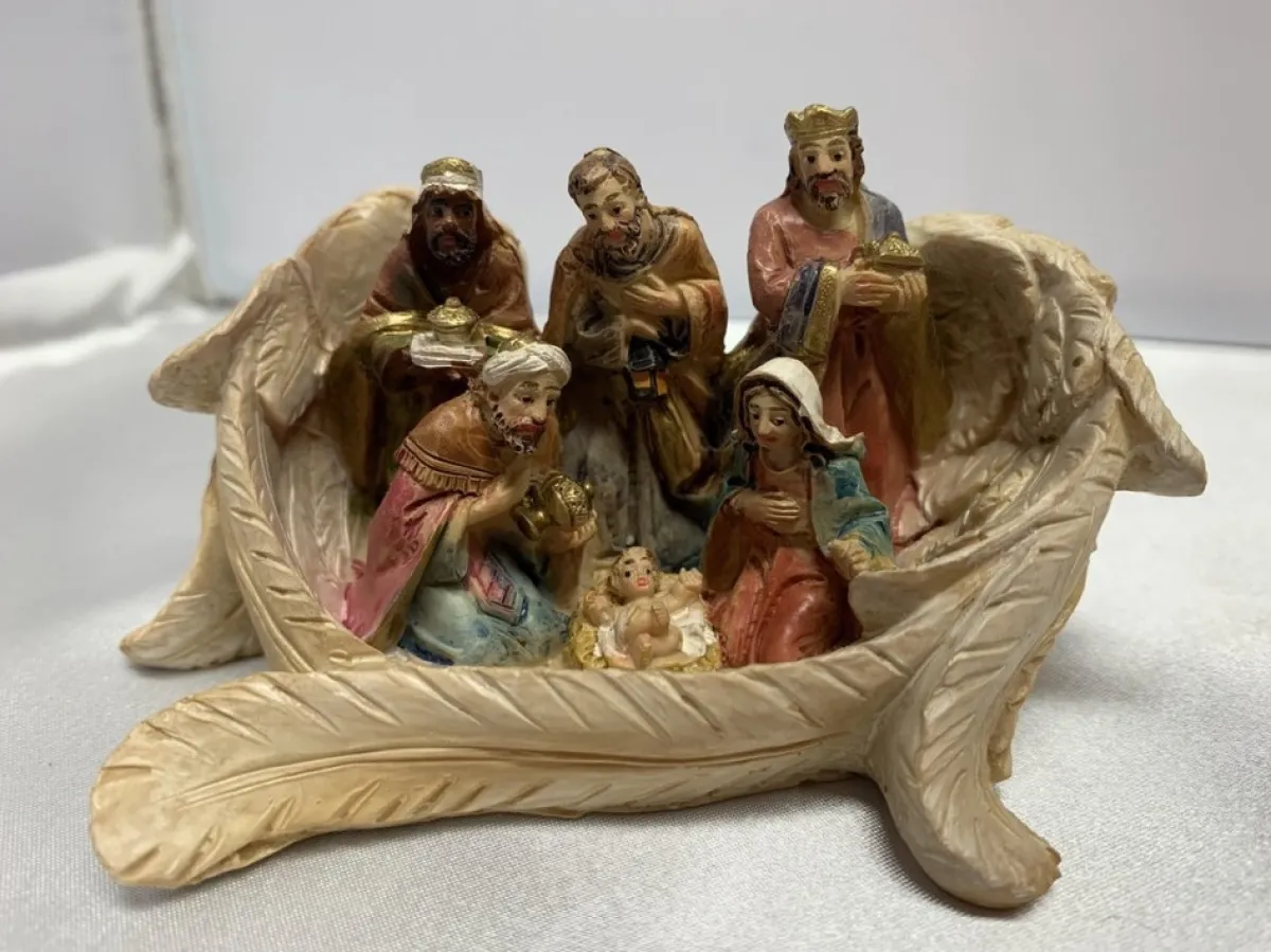 Kerststal In Engelen Vleugels Staand. Afmeting 10.5 X 7 X 6 Cm.