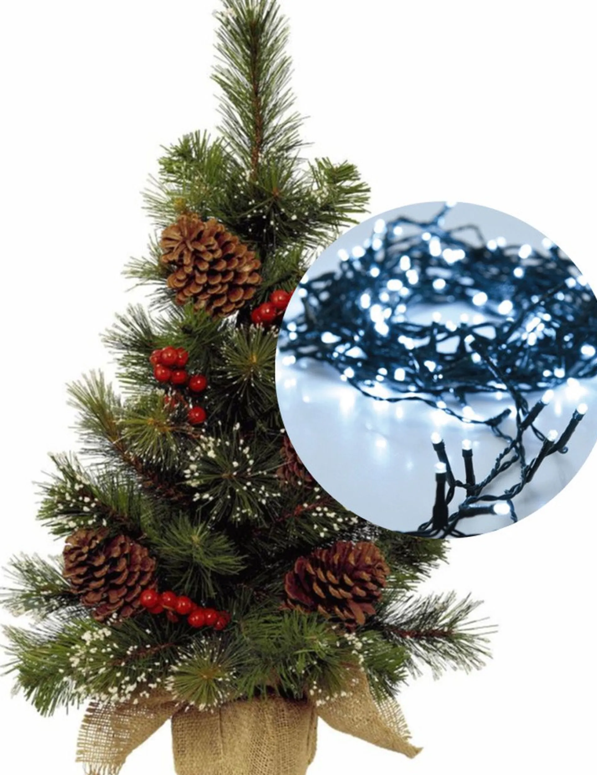 Mini Kerstboom Inclusief Kerstverlichting Helder Wit Met 40 Led Lampjes. Het Miniboompje Heeft Een Hoogte Van 45 Cm En Een Diameter Van 30 Cm. De Verlichting Is Ongeveer 300 Cm Lang En Heeft 40 Helder Witte Led Lichtjes. Mini Kunst Kerstboom Met Lichtsnoer.
