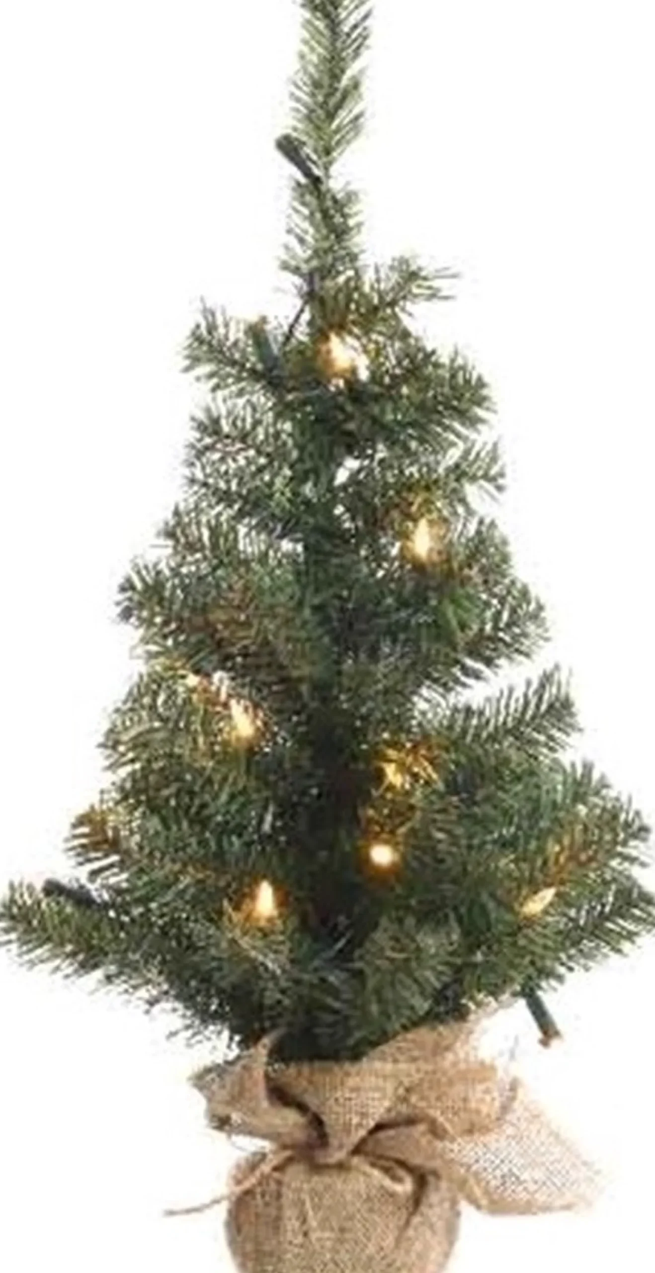 Everlands Mini Kunstkerstboom – 60 Cm Hoog – In Jute Zak – Met Verlichting Cheap